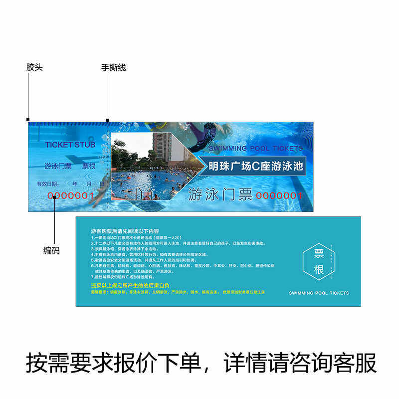 📚 游乐园门票座位号景区入场券游泳票券制作儿童乐园定制水票印刷