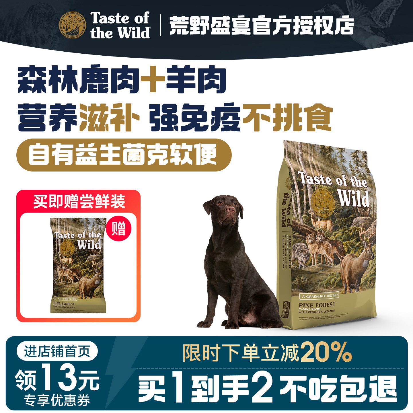 📚 【官方授权】荒野盛宴狗粮 无谷鹿羊肉成幼全犬粮|美版 适中颗粒