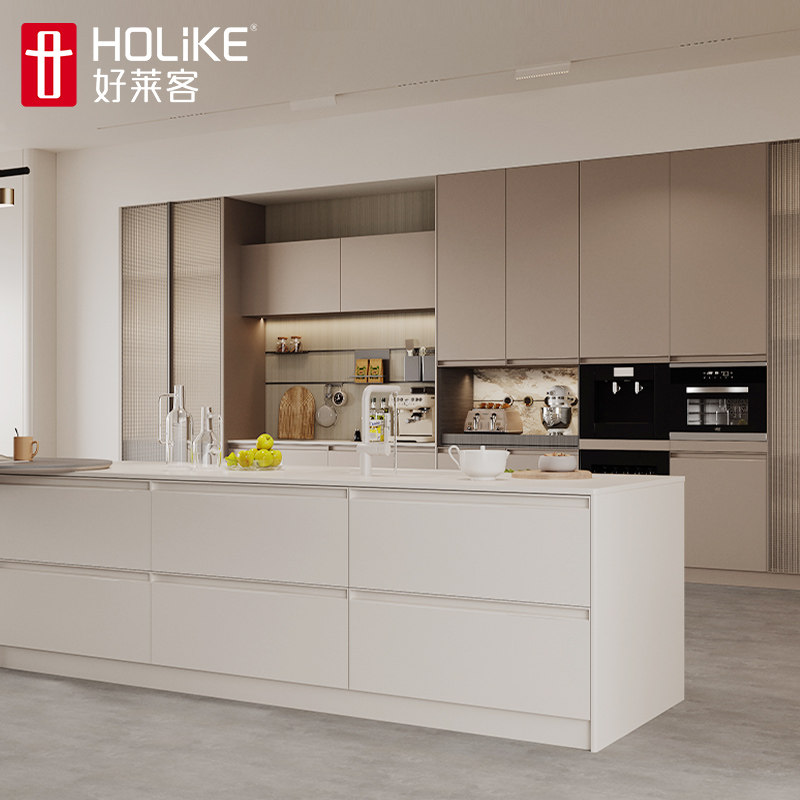📚 好莱客厨房L型动线整体橱柜定制 简约款定制柜石英石台面