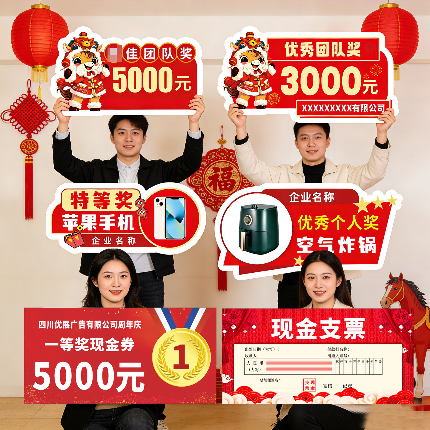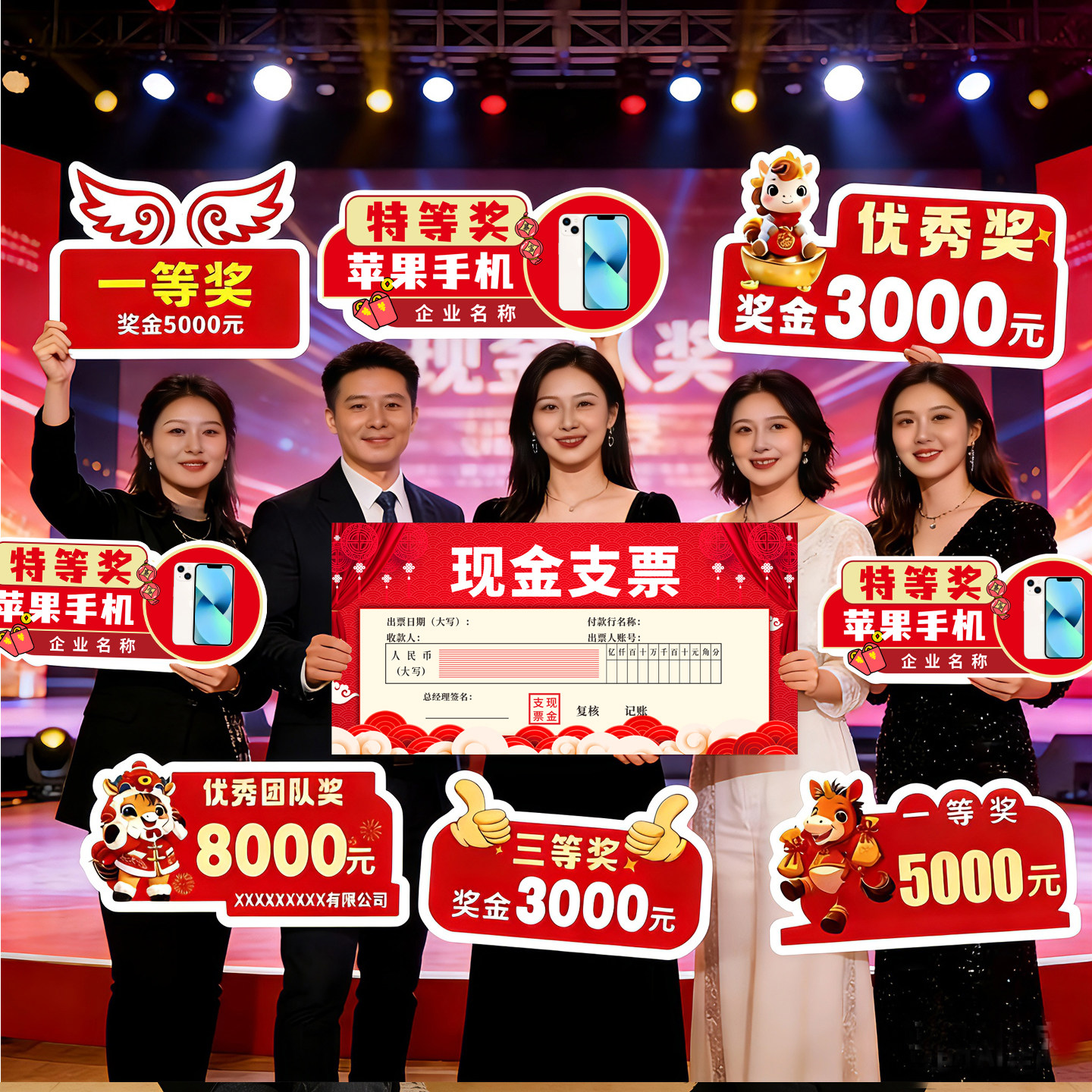 📚 公司年会活动颁奖支票奖金拍照道具手举牌陪嫁展示牌kt泡沫板定制