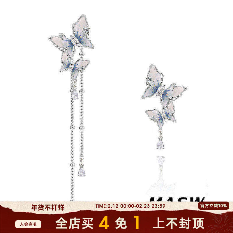 📚 MASW麻秀原创设计蝶舞系列灵动渐变蓝色蝴蝶耳环清新春夏流苏耳饰