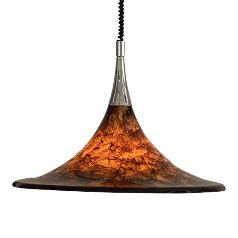 📚 落霞设计师中古餐厅吊灯可升降喇叭飞碟灯复古彩绘书房岛台伸缩灯