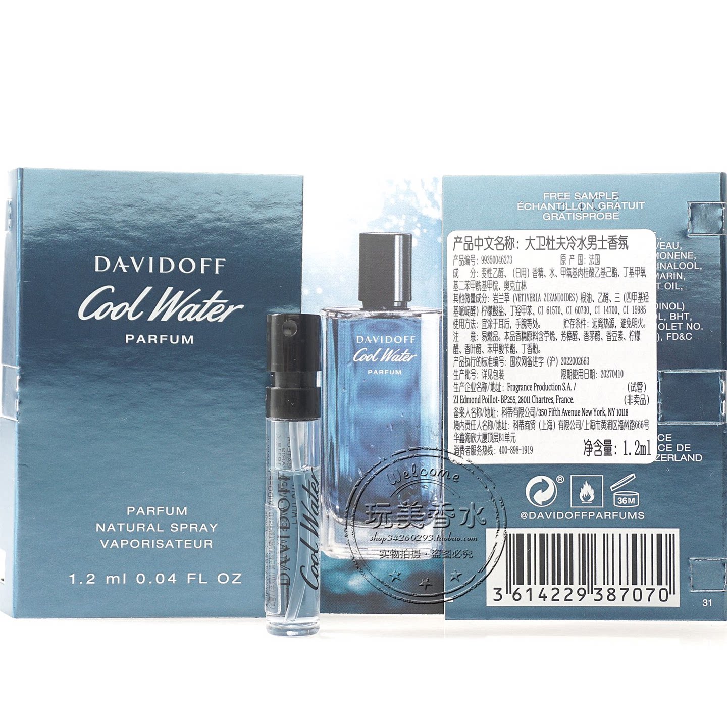 📚 大卫杜夫冷水香精Cool Water香水小样1.2ML清新海洋烟草淡香持久