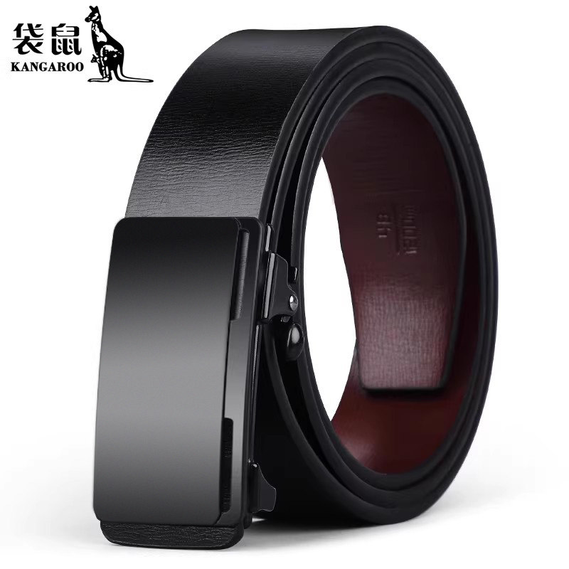 📚 袋鼠男士皮带真皮无牙内穿自动扣纯牛皮休闲品牌潮流腰带奢华大牌