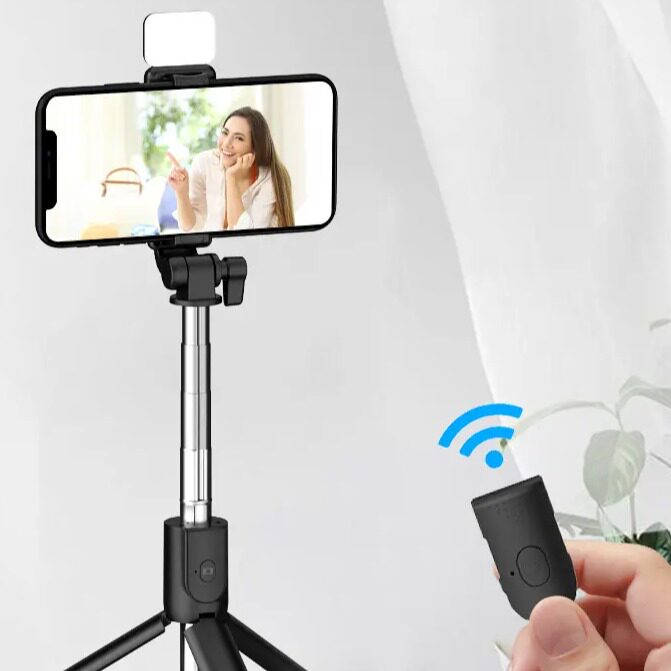 📚 简约风手机蓝牙自拍杆加长带补光灯手持一体式桌面三脚支架自拍杆
