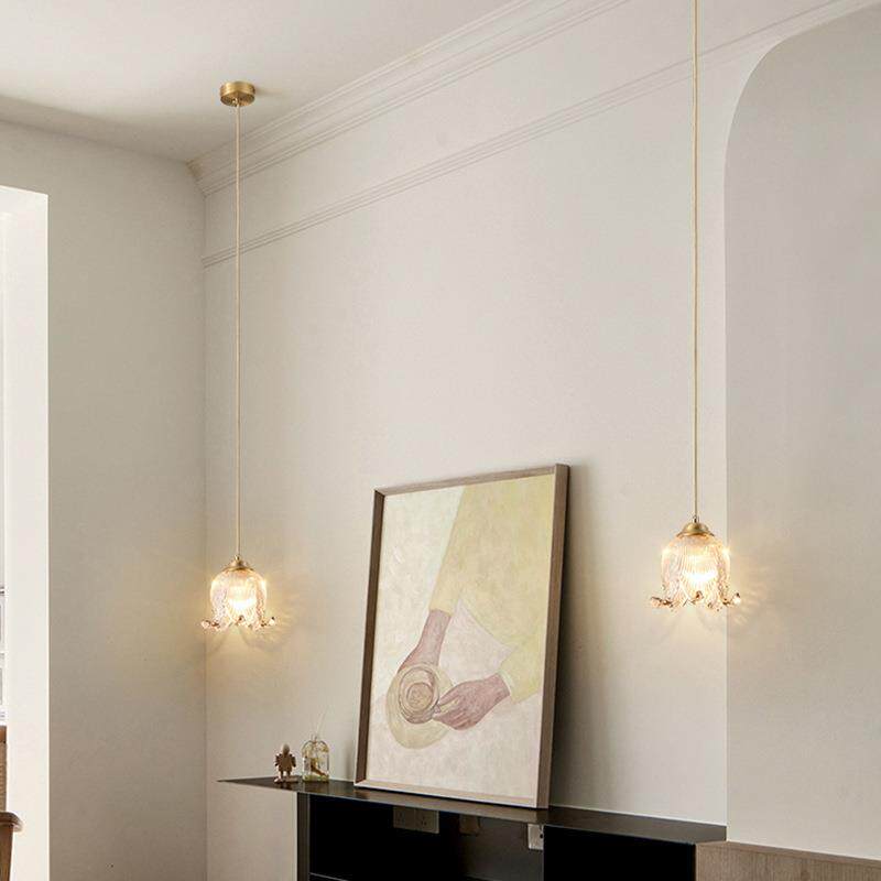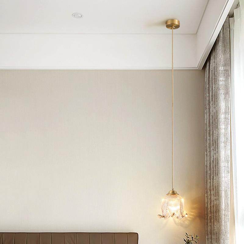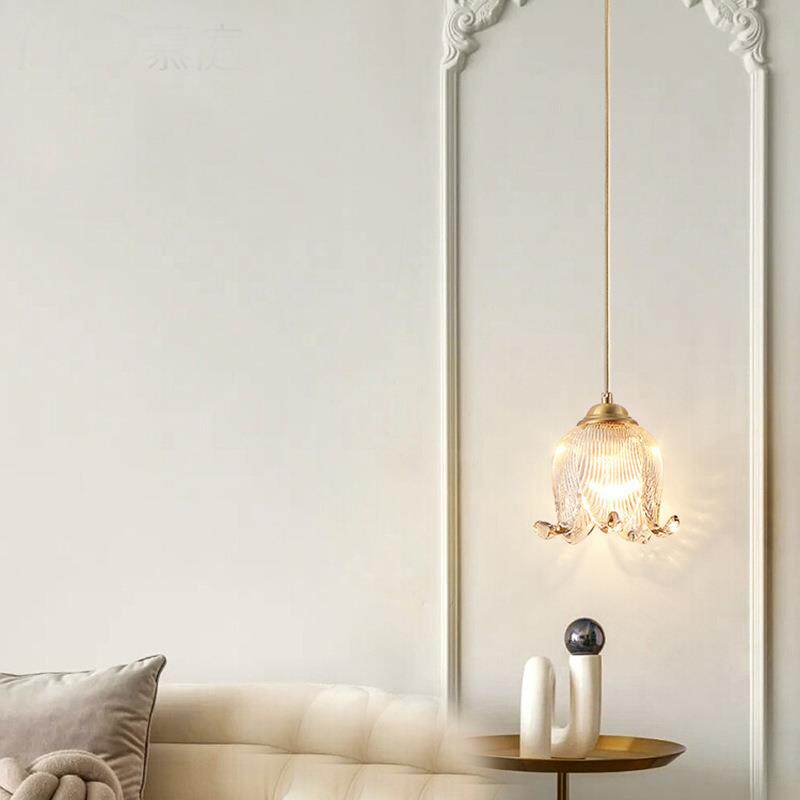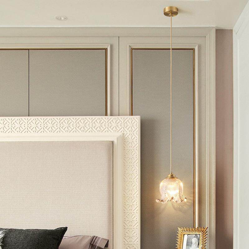 📚 法式床头小吊灯奶油卧室壁灯垂线吊线灯美式轻奢主卧全铜玻璃灯具