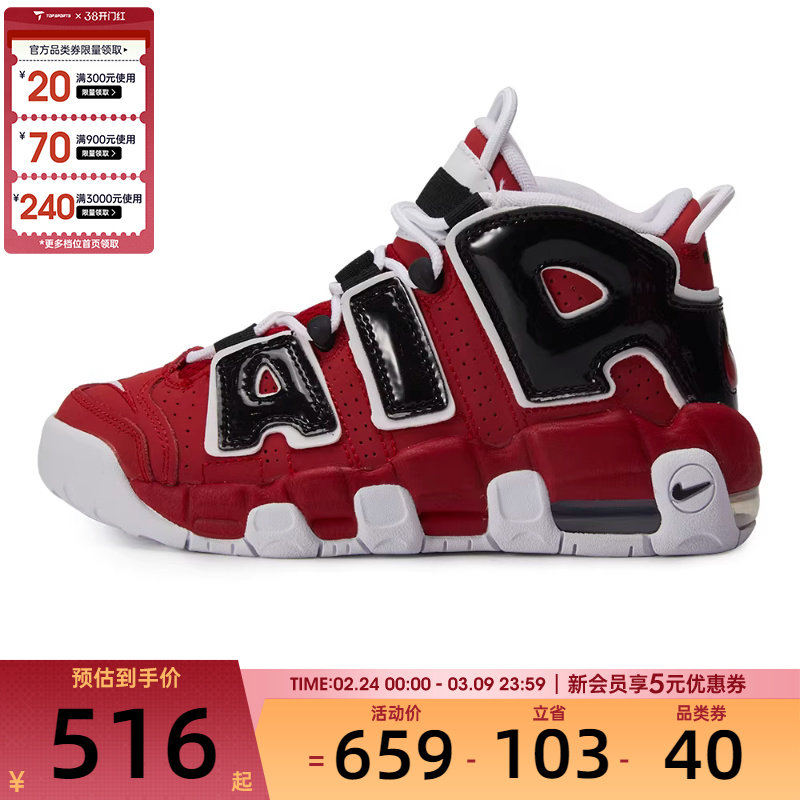 📚 NIKE耐克男大童AIR MORE UPTEMPO皮蓬运动训练篮球鞋415082-600