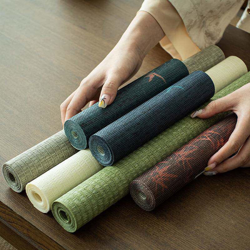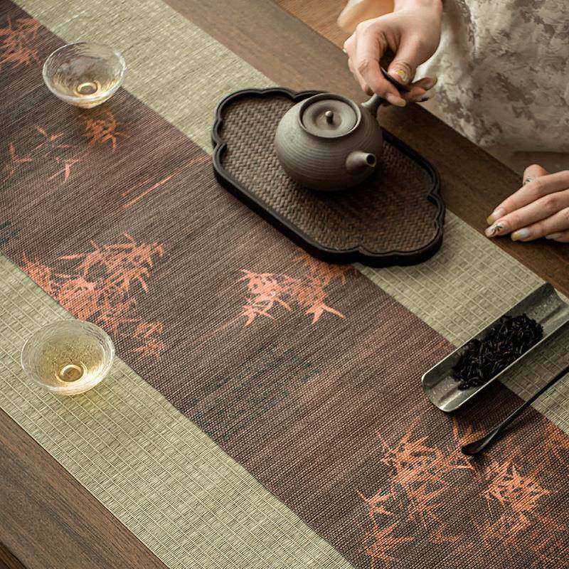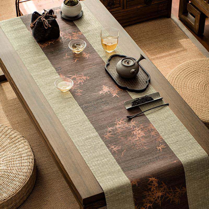 📚 形相茶席防水桌旗中式草编竹子茶旗禅意编织长条茶桌布秋季茶台布