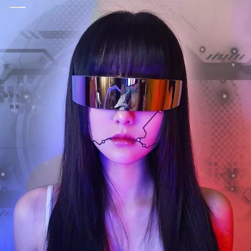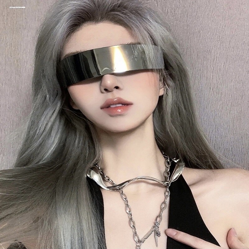 📚 韩国ins街头超酷未来科技感长方形眼镜网红墨镜镭射太眼镜女潮