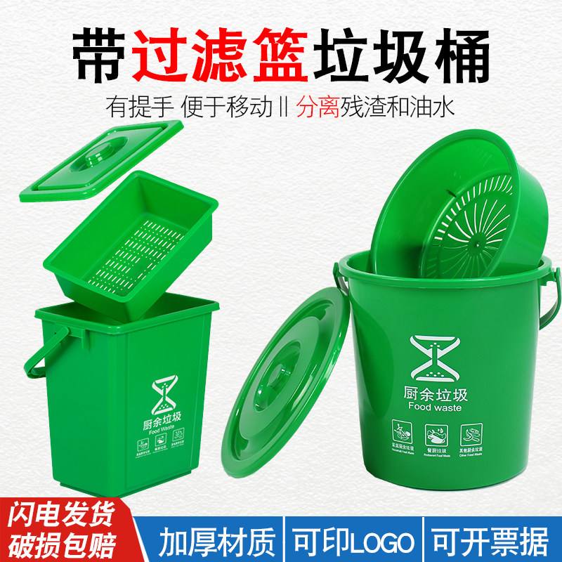 📚 带滤网分类垃圾桶厨房剩菜剩饭干湿分离圆形带盖提手桶厨余垃圾桶