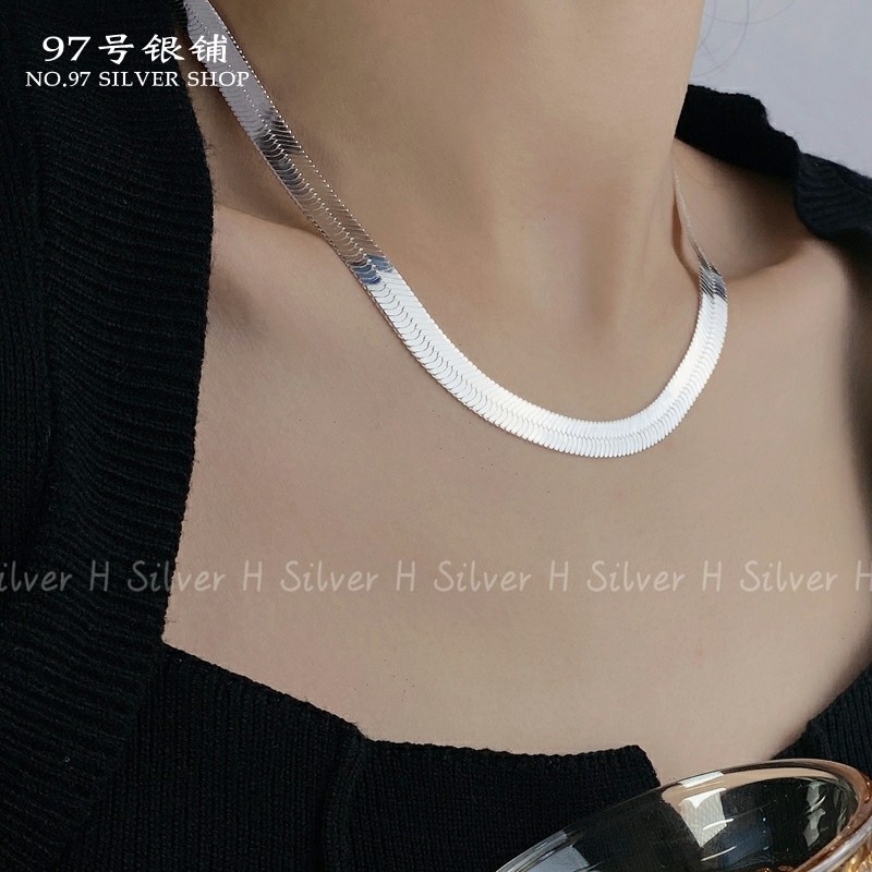 📚 S925纯银超宽扁形蛇骨项链简约重工气质嘻哈刀片锁骨链潮流单链