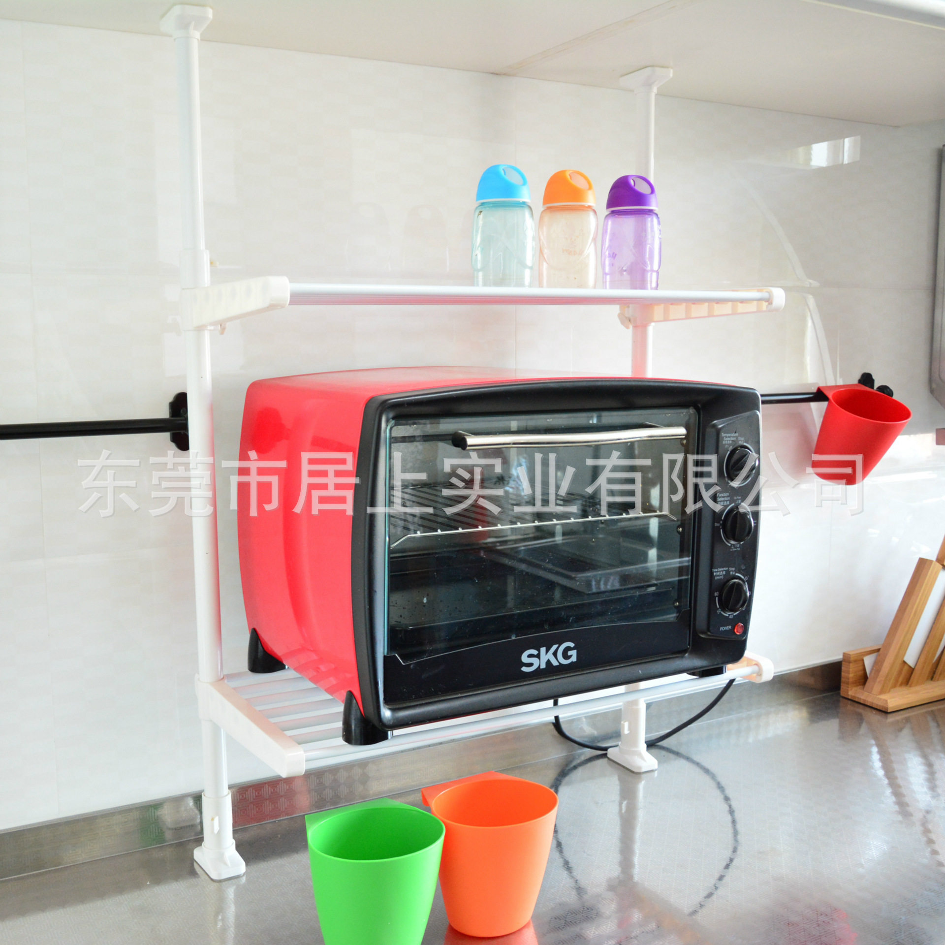 📚 顶天立地式免打孔免钉厨房烤箱锅碗瓢盆调料置物架双层收纳层架包