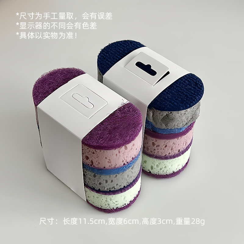 📚 出口 一卡3个装 清洁海绵擦加厚高密度双面厨房百洁布吸水刷碗锅