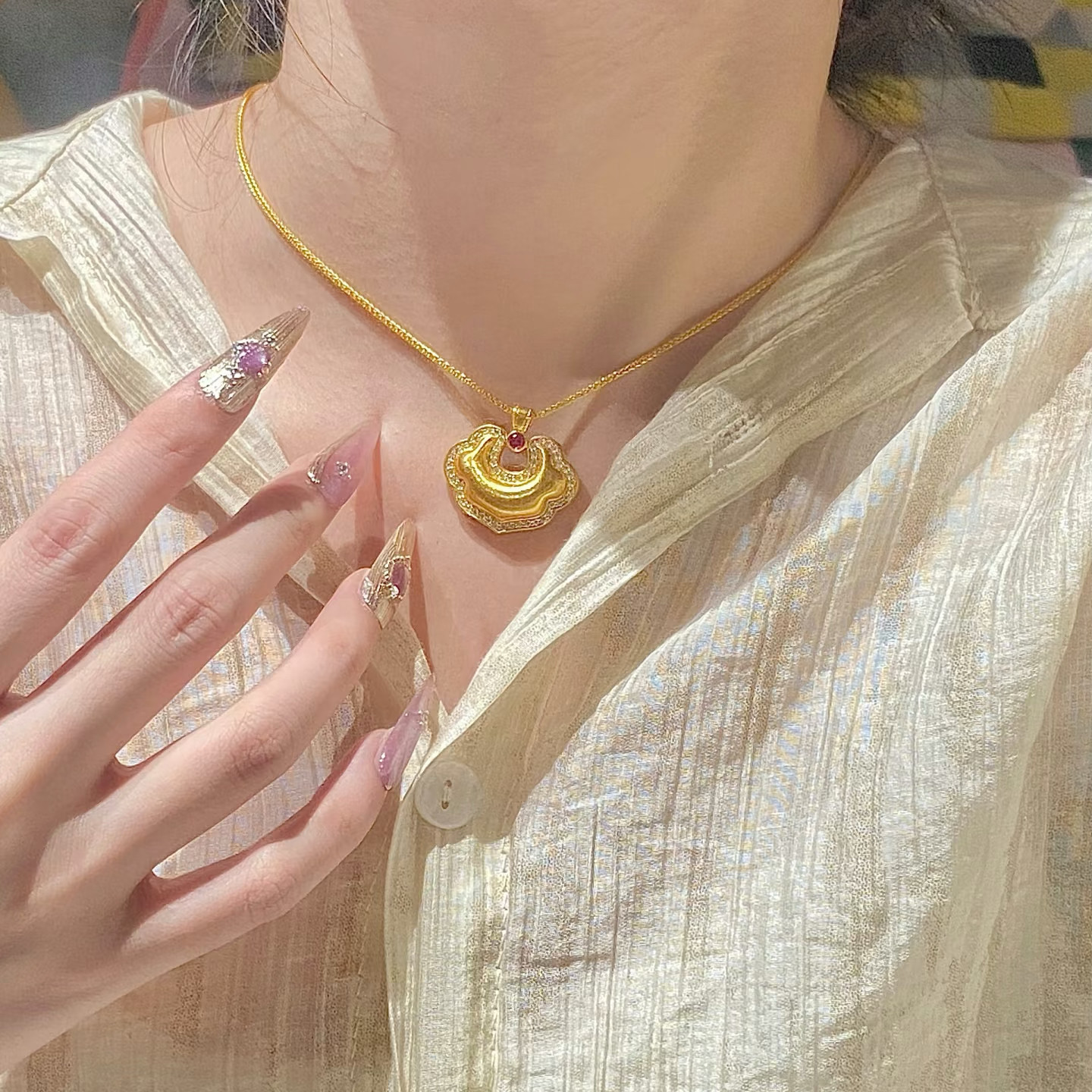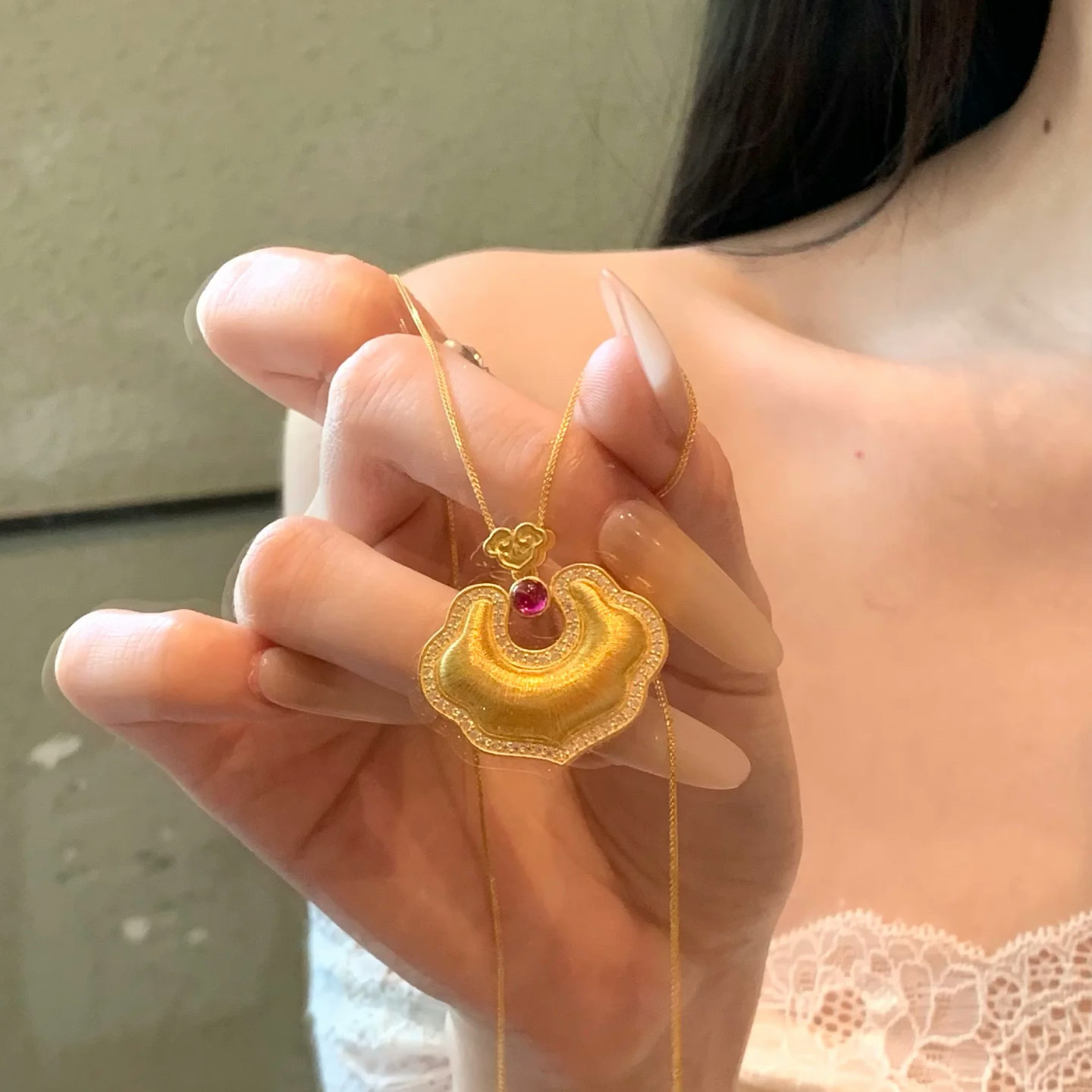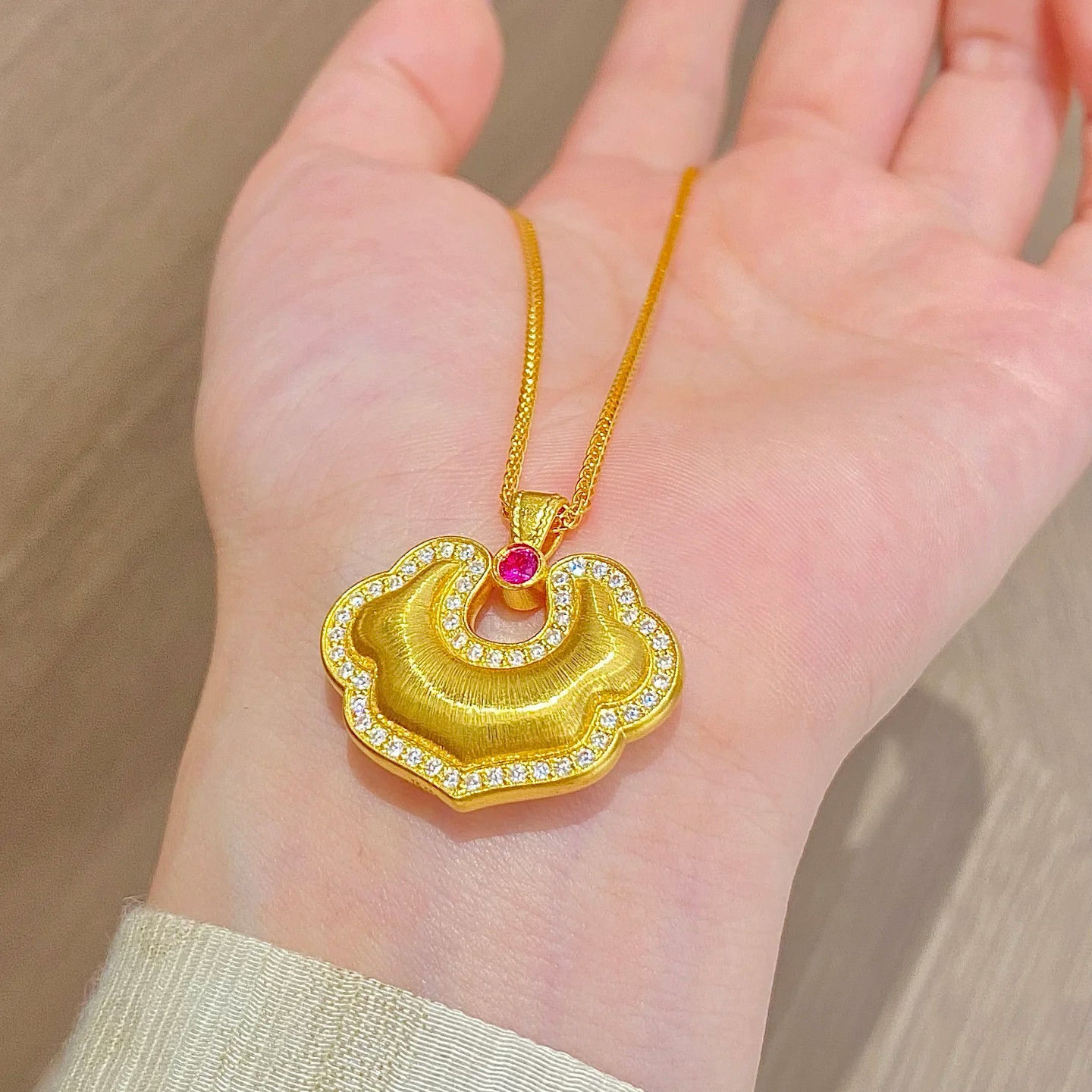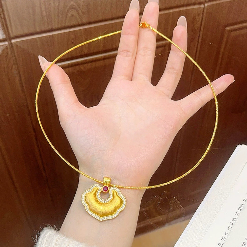 📚 点钻拉丝如意锁沙金吊坠平安祥云项链新中式仿真黄金锁骨链送女友