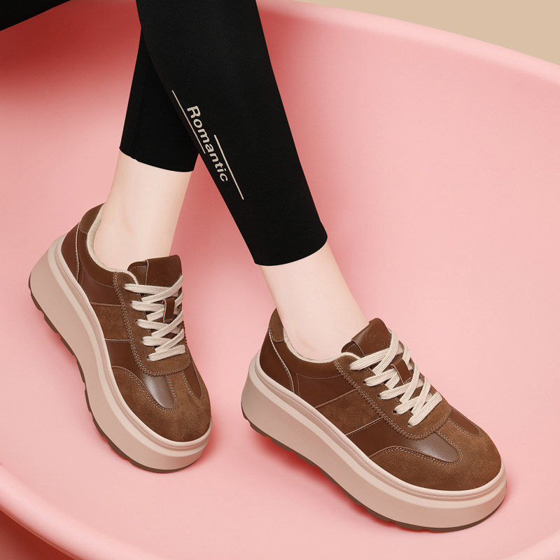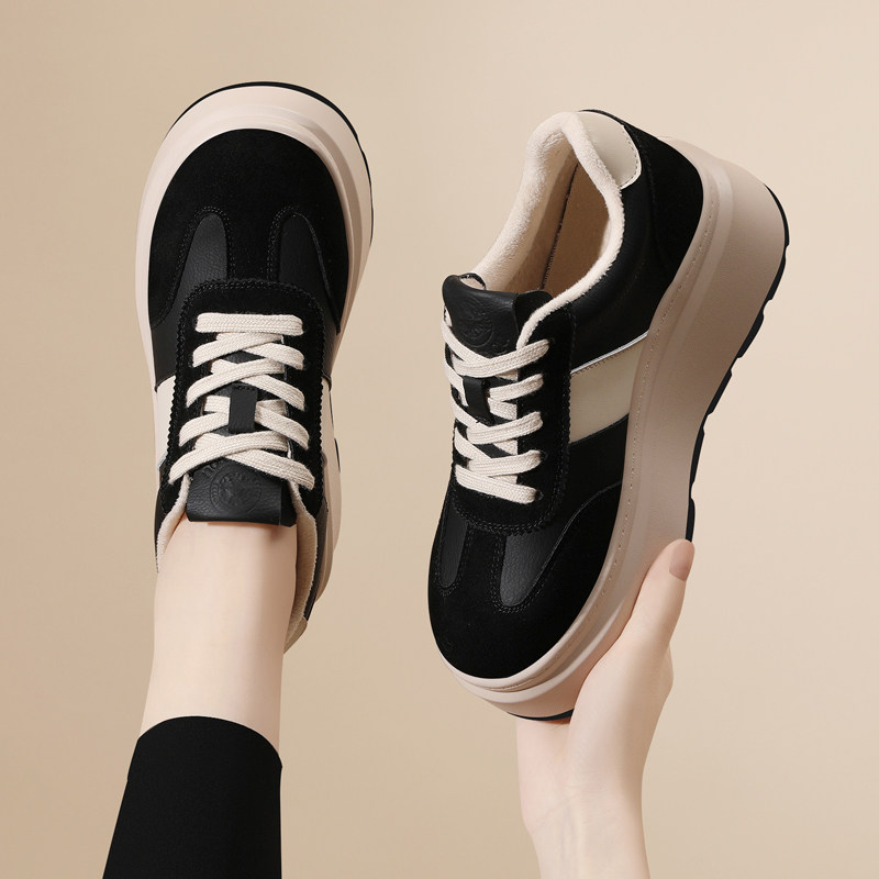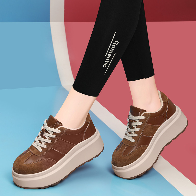📚 厚底增高休闲鞋子女款2025新款冬季加绒平底板鞋软底运动鞋面包鞋