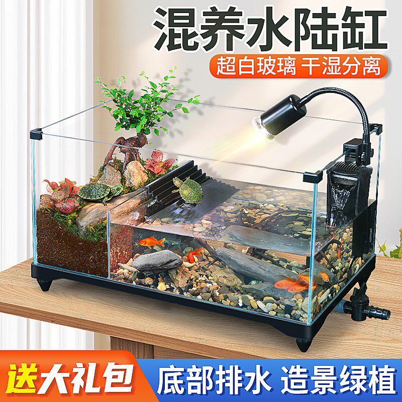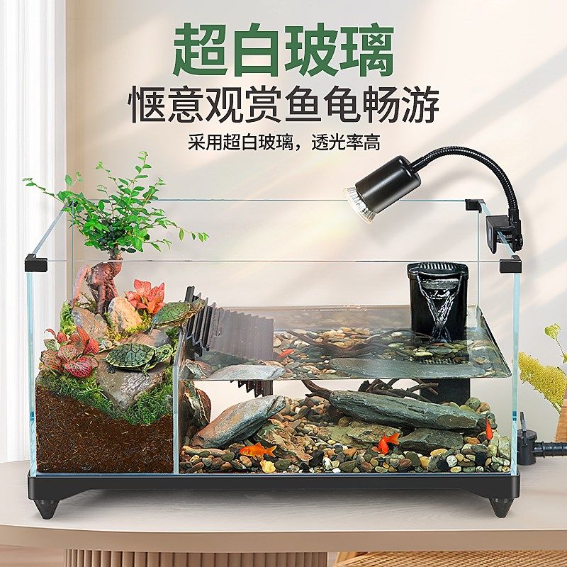 📚 乌龟饲养缸家用生态造景小别墅防逃逸水陆两栖缸养乌龟专用玻璃缸