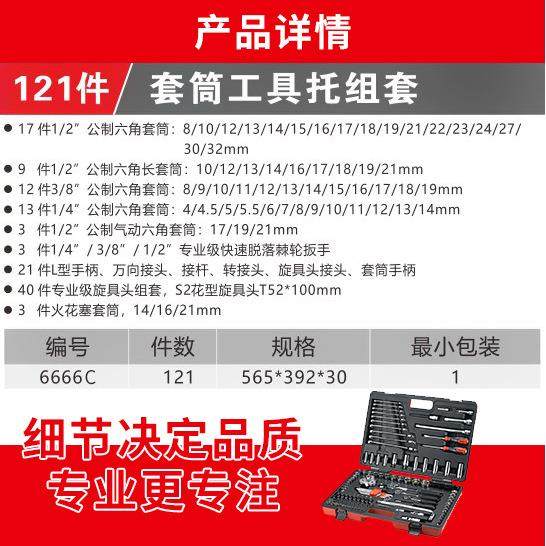 📚 百思泰121件工具套装深圳百思泰121PC综合组套6666C套筒扳手组合