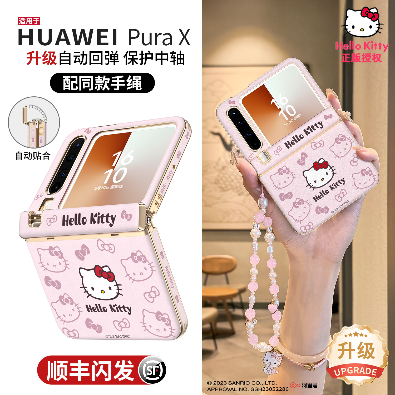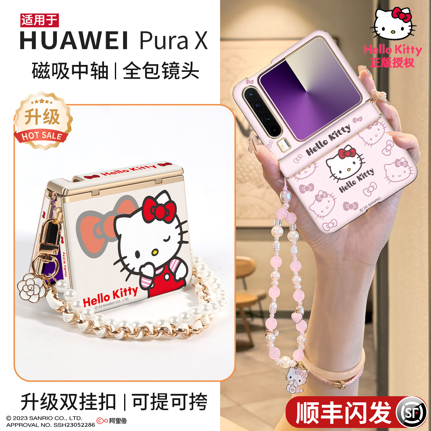 📚 【IP联名】HelloKitty正版适用华为PuraX手机壳新款pura X典藏版折叠屏PX中轴全包防摔带挂绳可斜挎女保护套