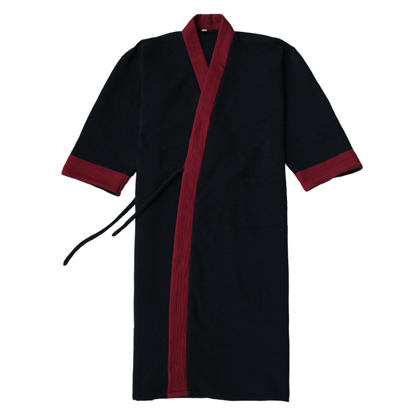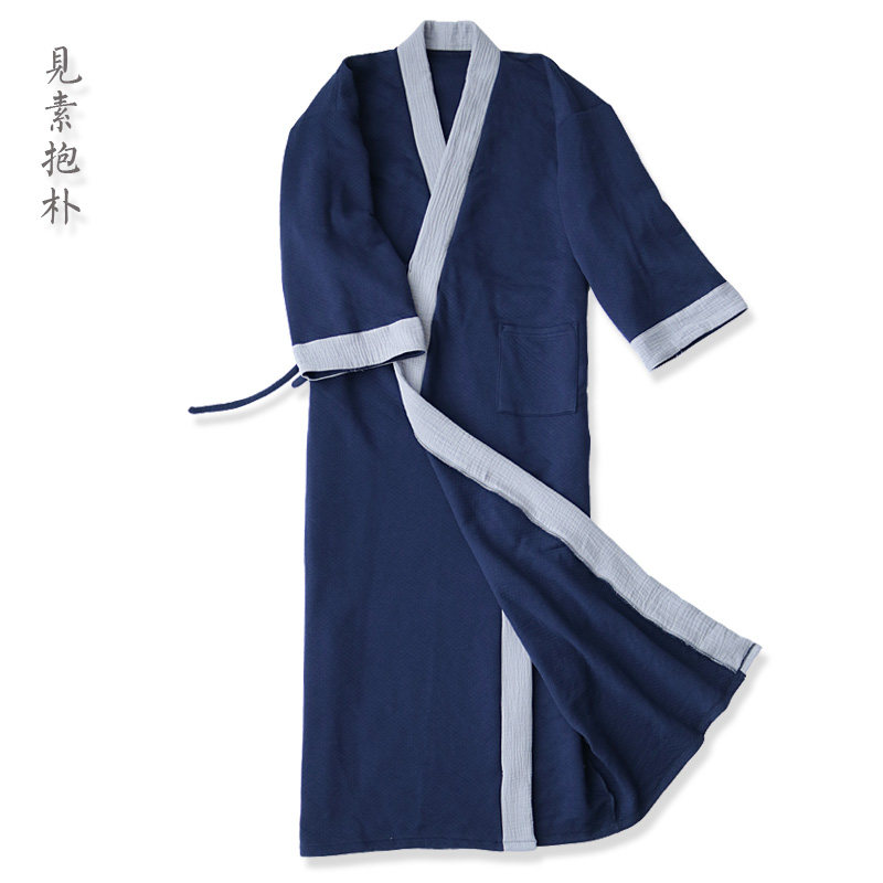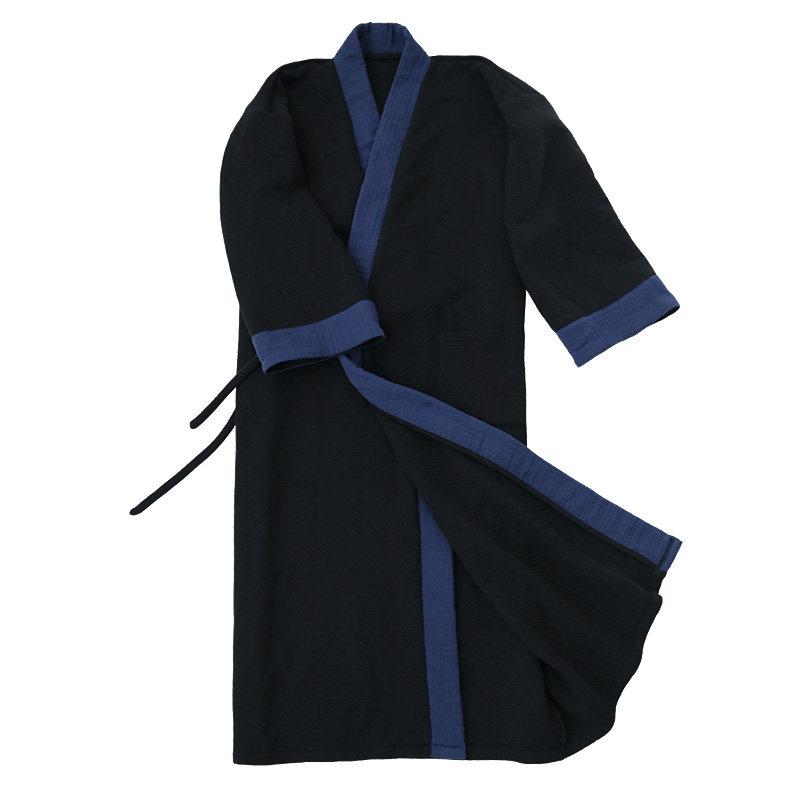 📚 黑色秋冬男古风长袍加厚纯棉加长款睡袍家居服睡衣中国风汉服纯色