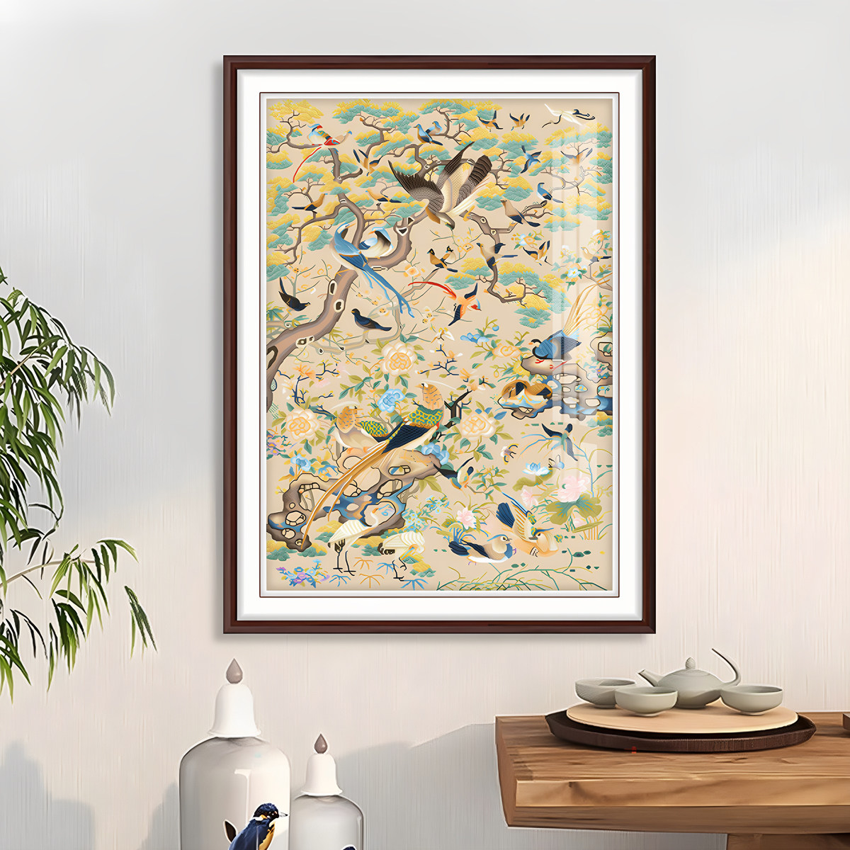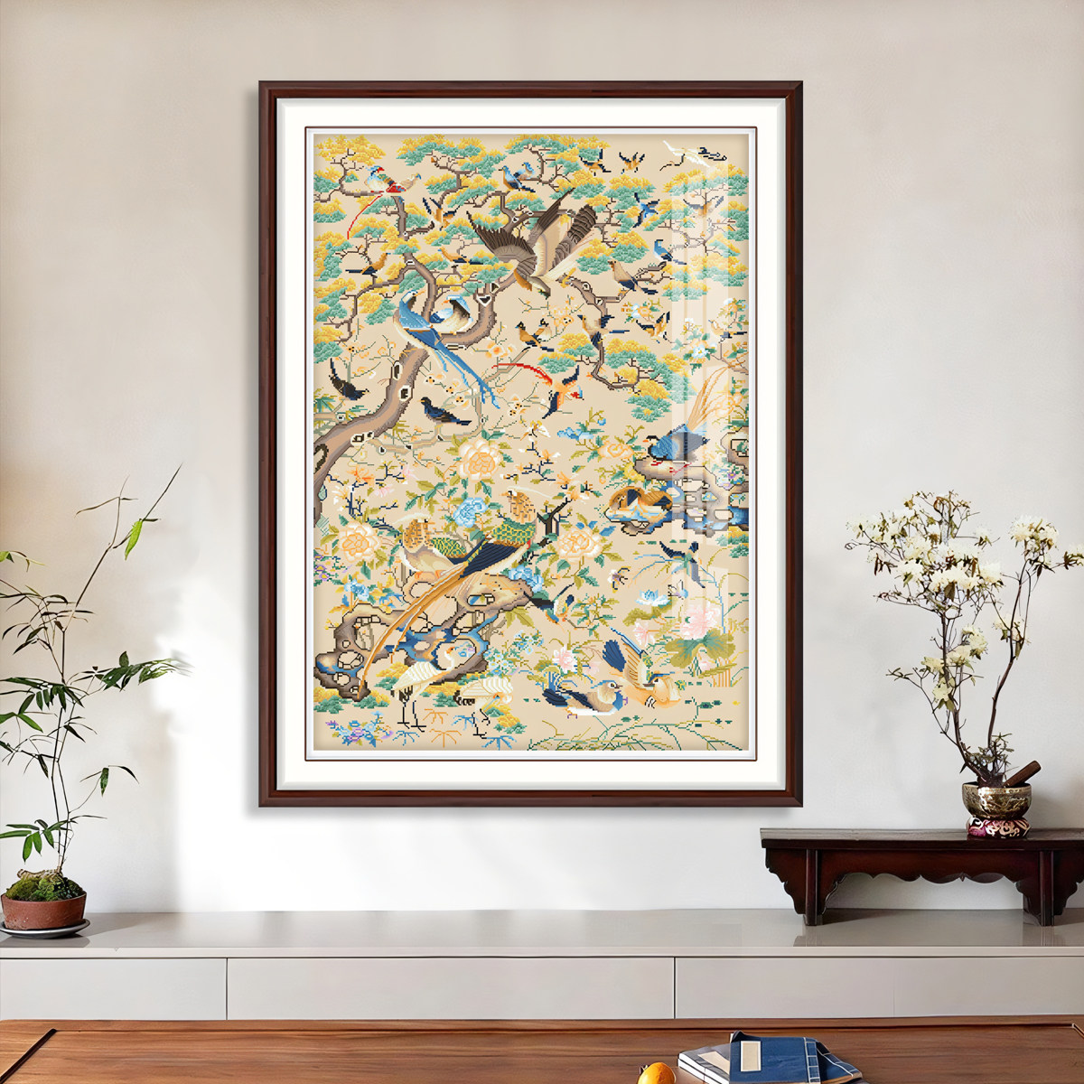 📚 百鸟争鸣十字绣2026新款高级客厅大气花鸟名画刺绣玄关手工自己绣