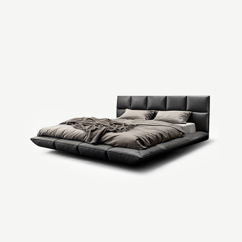 📚 JORDON意式极简真皮床主卧大床黑色双人床2米现代轻奢高级感婚床