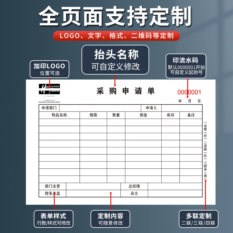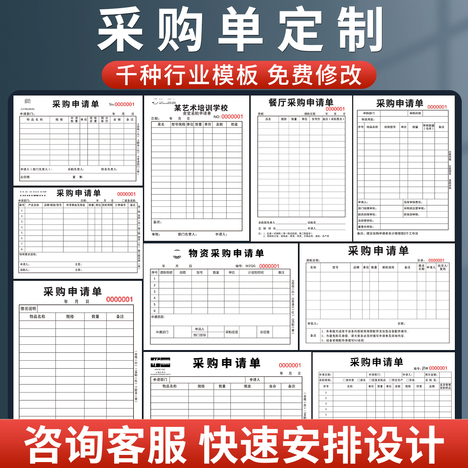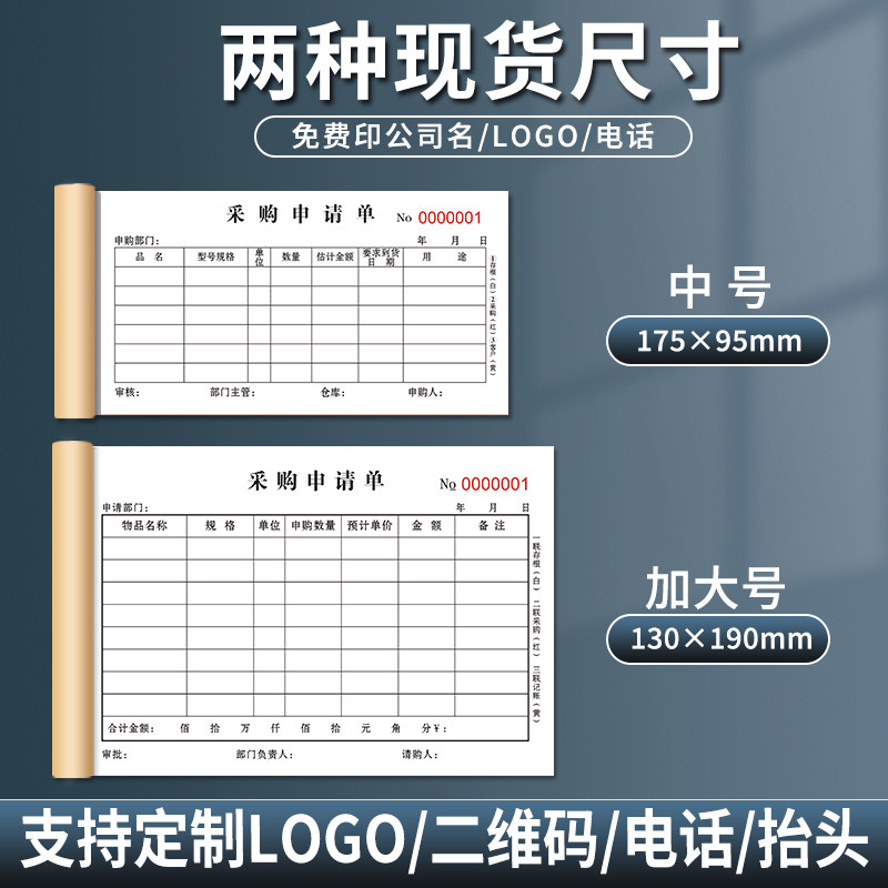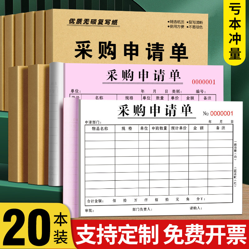 📚 定制采购申请单二联三联采购付款申请报销单据订做仓库货物采购本酒店饭店医院物资物料申购单公司通用采购单