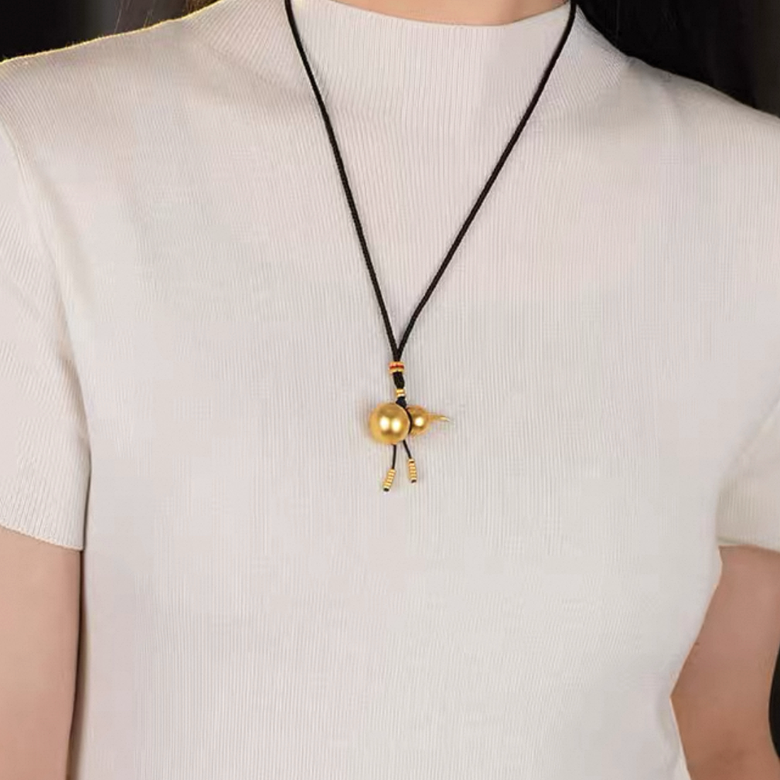 📚 葫芦流苏沙金吊坠项链仿真黄金毛衣链霖儿同款福禄新中式久不掉色