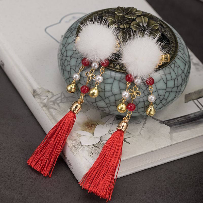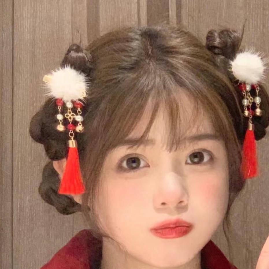 📚 古风汉服过年新年毛球发夹红色可爱流苏儿童发饰配饰中国古装头饰