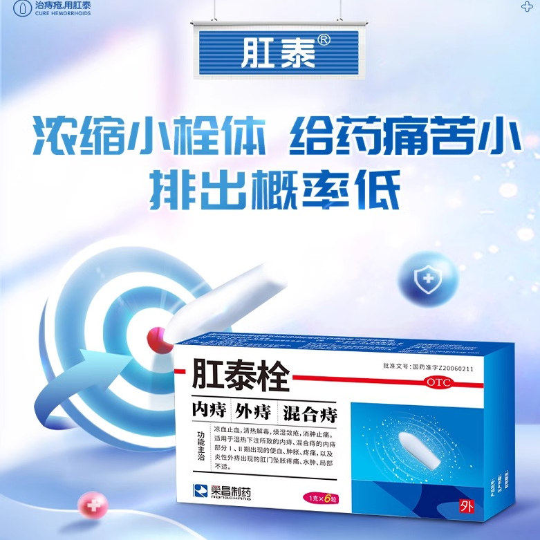 📚 荣昌肛泰痔疮栓痔疮膏药6粒便血肉球肿胀疼痛肛泰栓正品太宁复方