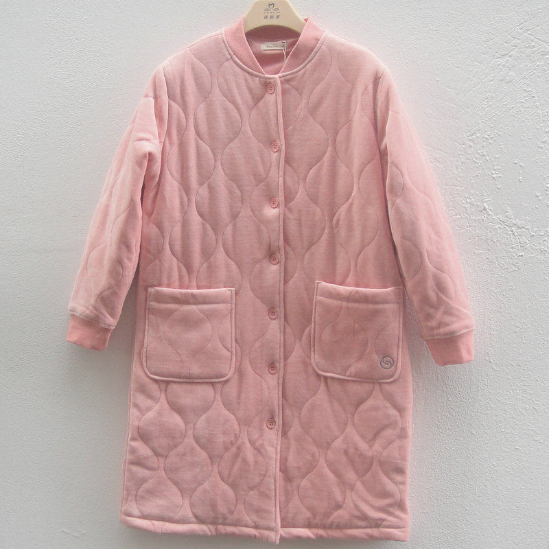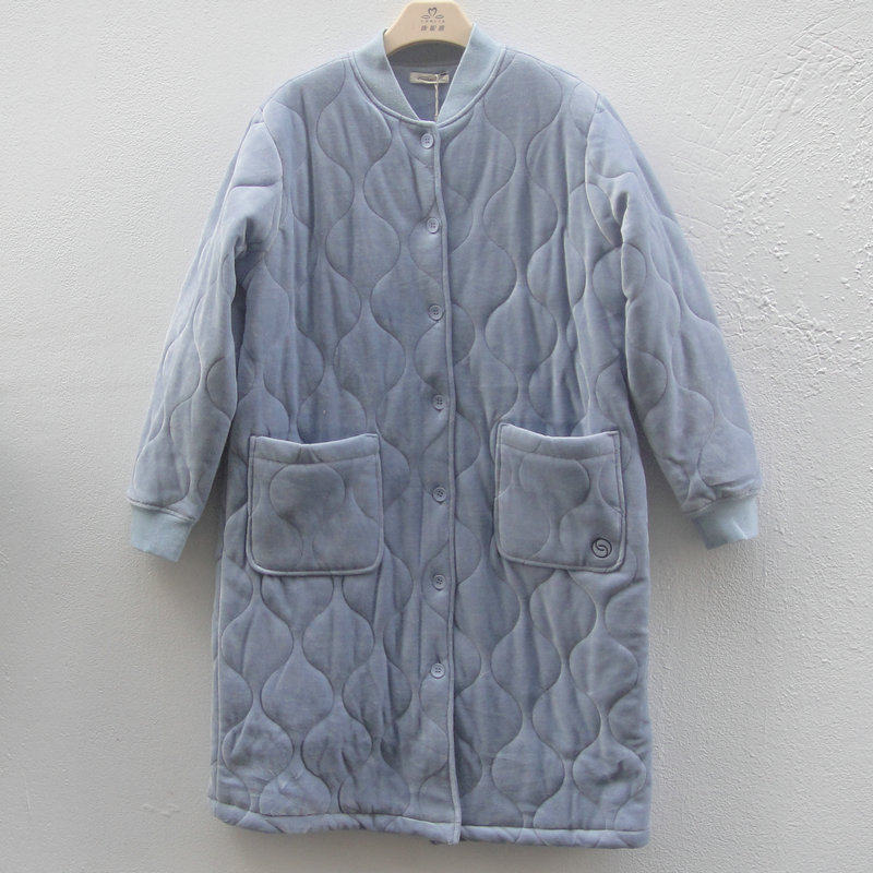 📚 康妮雅家居睡衣新款剪绒布夹棉立领开衫长袖休闲女睡袍622024