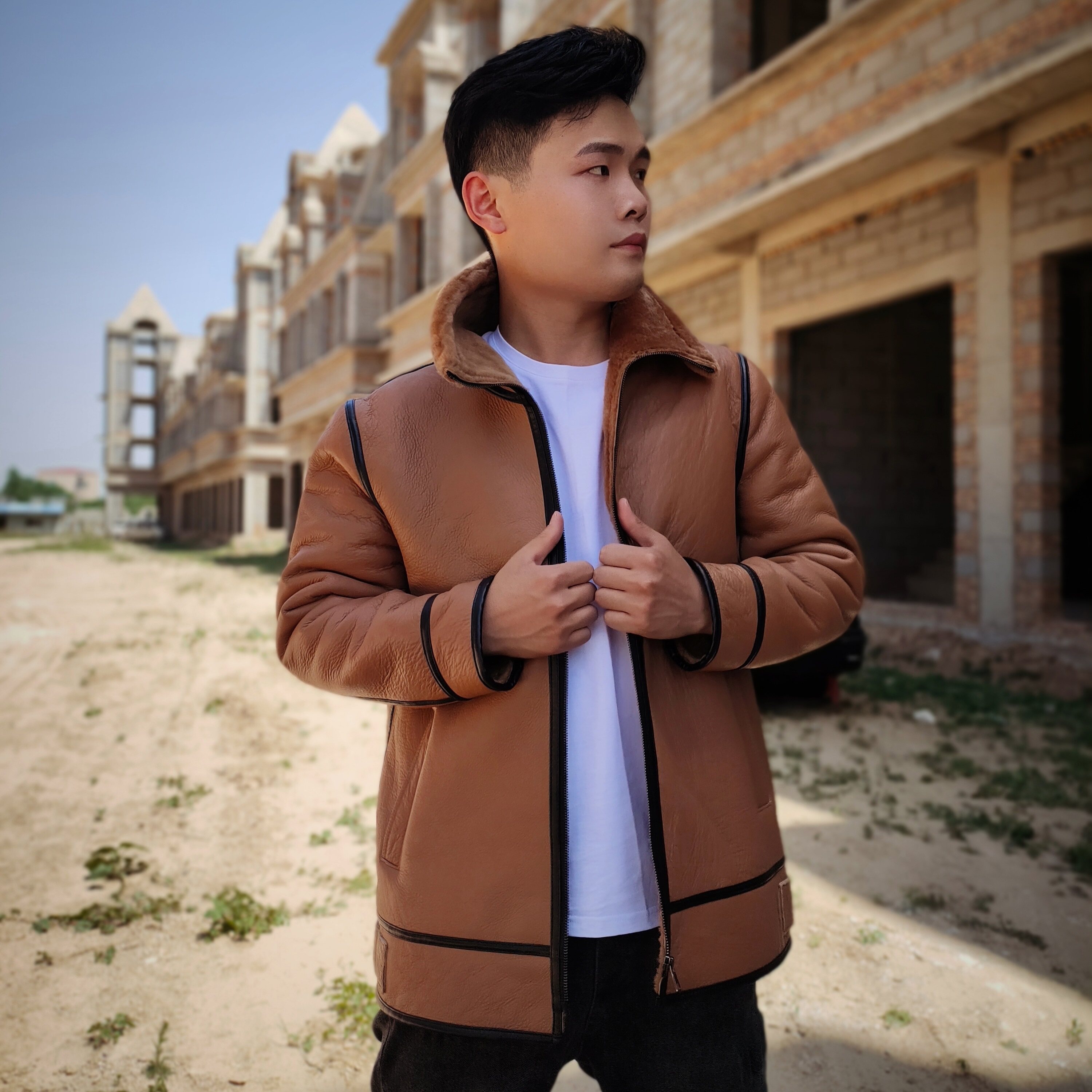 📚 反季进口原生态皮毛一体男款皮衣加厚原皮原毛羊皮冬季真皮男外套