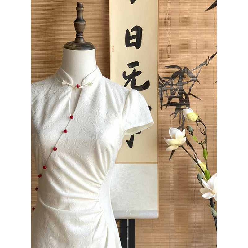 📚 【云中月】新中式白色改良旗袍日常气质收腰设计感温柔国风连衣裙