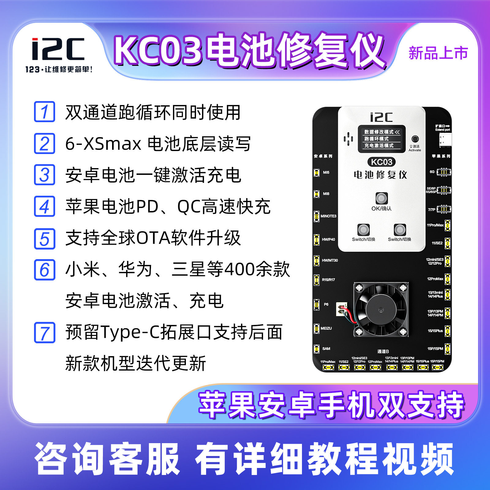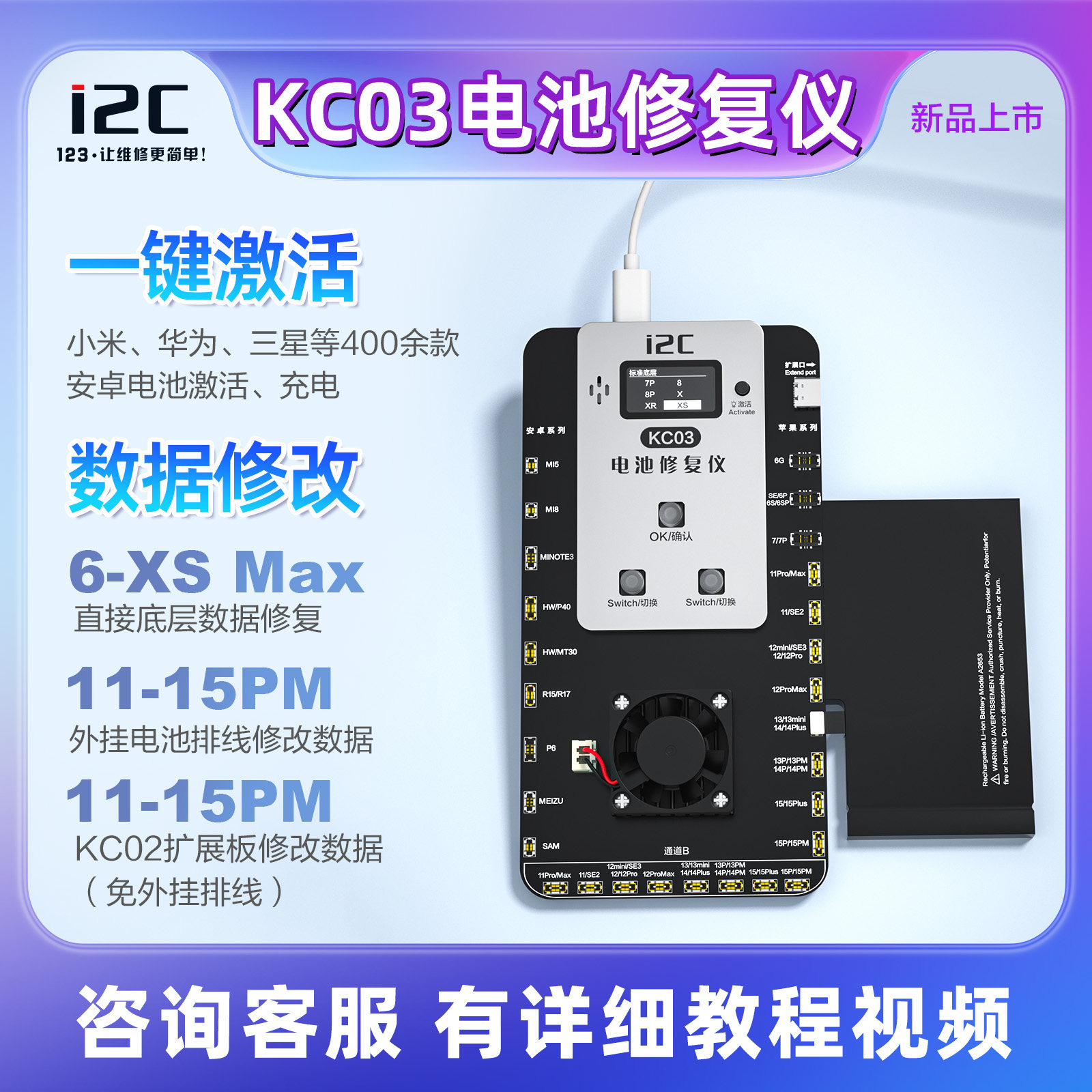 📚 I2C新款KC03电池修复仪双通道跑循环支持6-15PM电池底层读写效率
