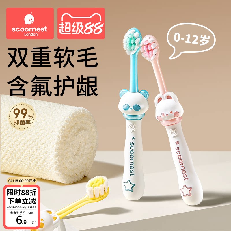 📚 科巢儿童软毛牙刷宝宝0-1-2-3到6一12岁半以上牙膏婴幼儿乳牙刷