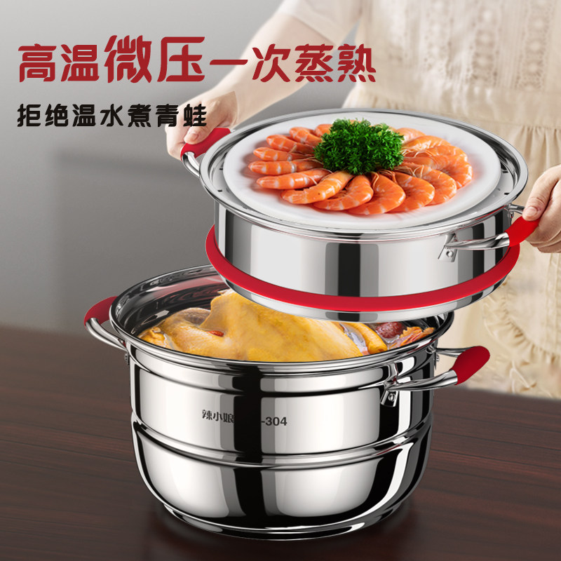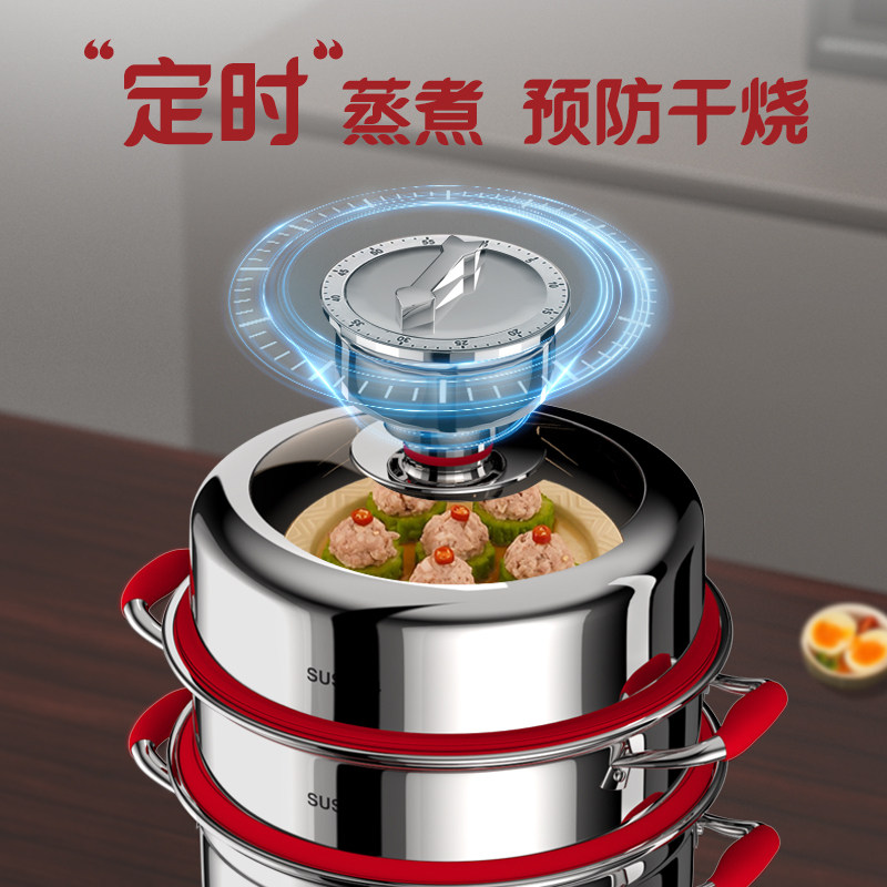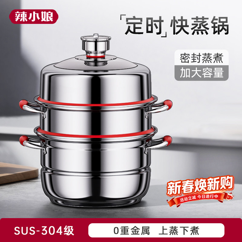 📚 辣小娘蒸锅定时多功能煮家用不锈钢多层三层蒸笼蒸鱼电磁炉燃气灶