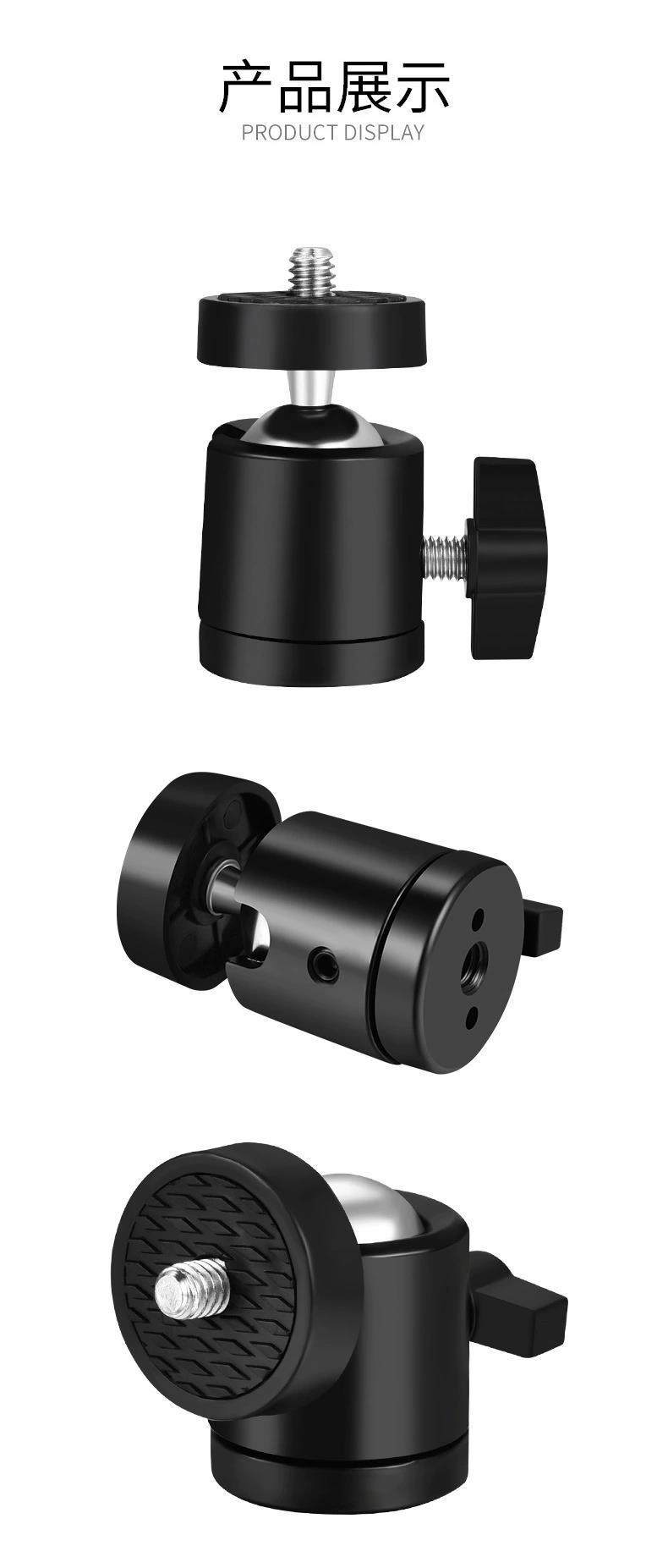 📚 金属云台三脚架摄影配件万向1/4螺口小云台直播灯架旋转360度