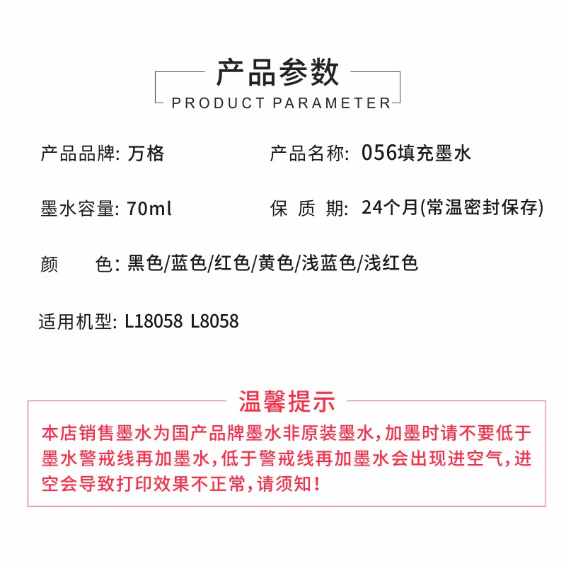 📚 适用EPSON爱普生L18058墨水056打印机L8058六色黑彩色墨仓式墨水