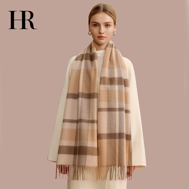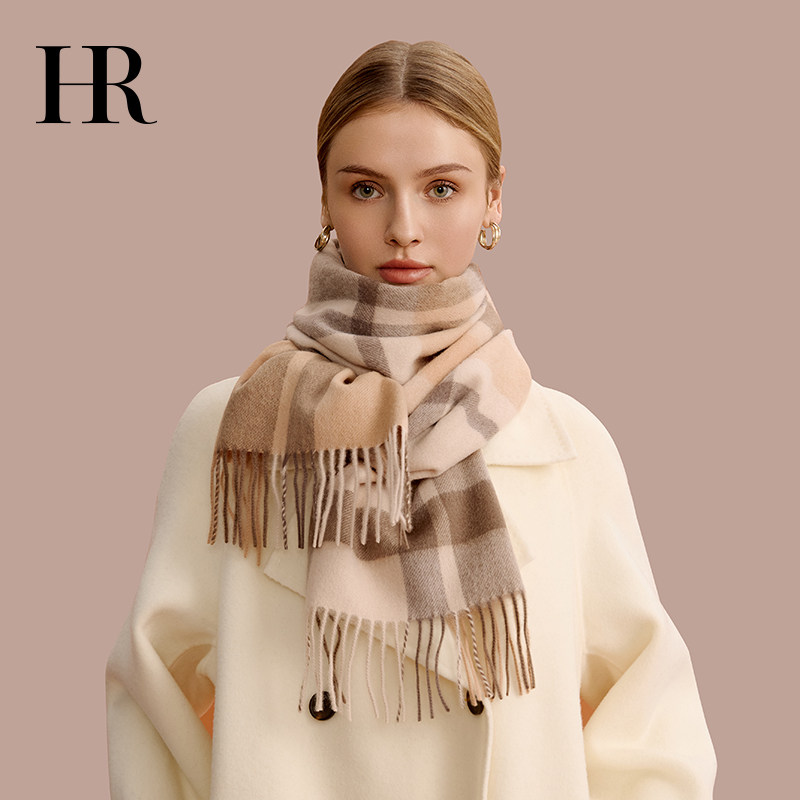 📚 【新年礼物】HR赫莲娜100%纯羊毛格子围巾披肩送女朋友生日礼物