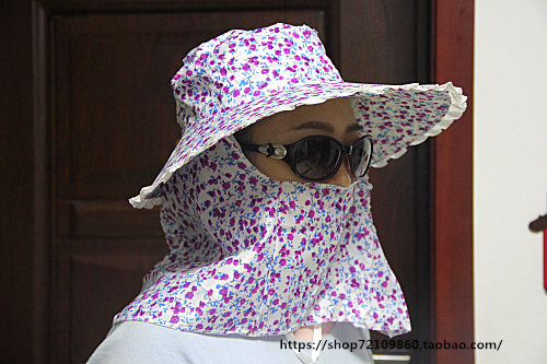 📚 女士夏季遮阳帽户外防晒遮脸大檐太阳帽骑车帽采茶帽包脸惠安帽子
