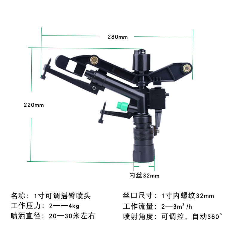 📚 1寸自动旋转摇臂喷头可调园林绿化360度农业果树大田喷灌灌溉喷枪