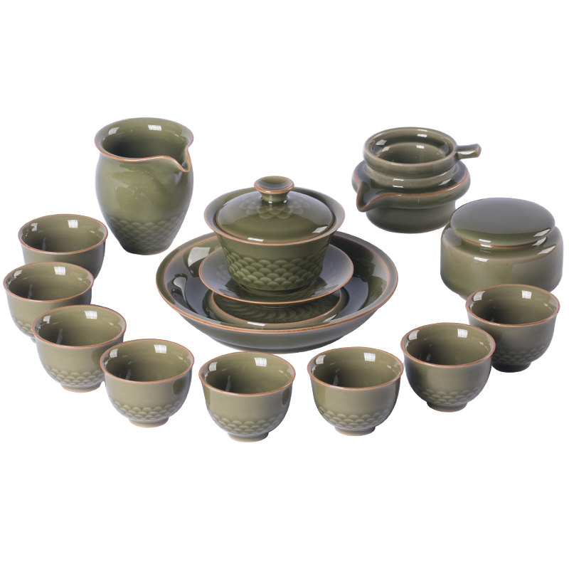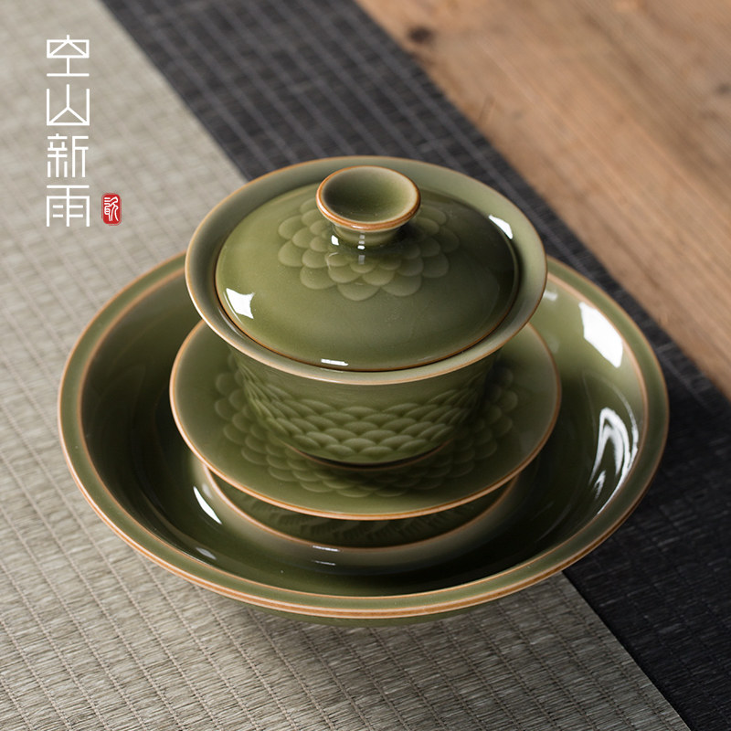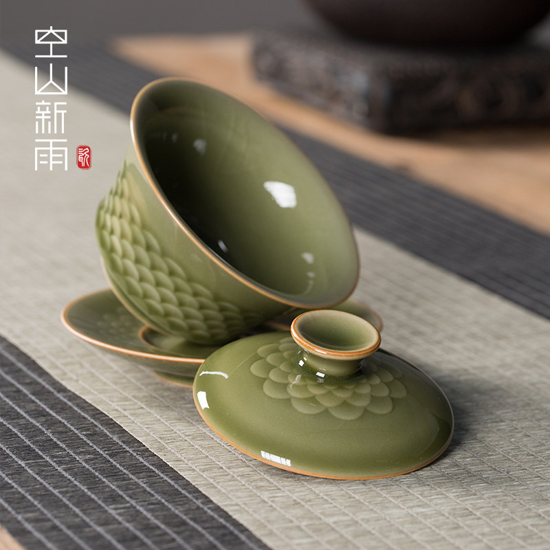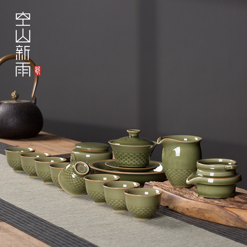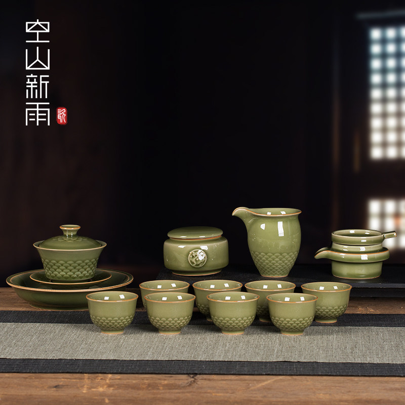 📚 空山新雨高端功夫茶具套装家用客厅陶瓷茶壶茶杯龙泉青瓷盖碗茶具