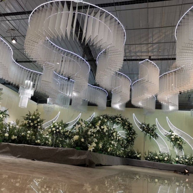 📚 新款婚庆道具一帘幽梦珠帘吊顶浪漫婚礼堂弧形吊顶活动装饰布置