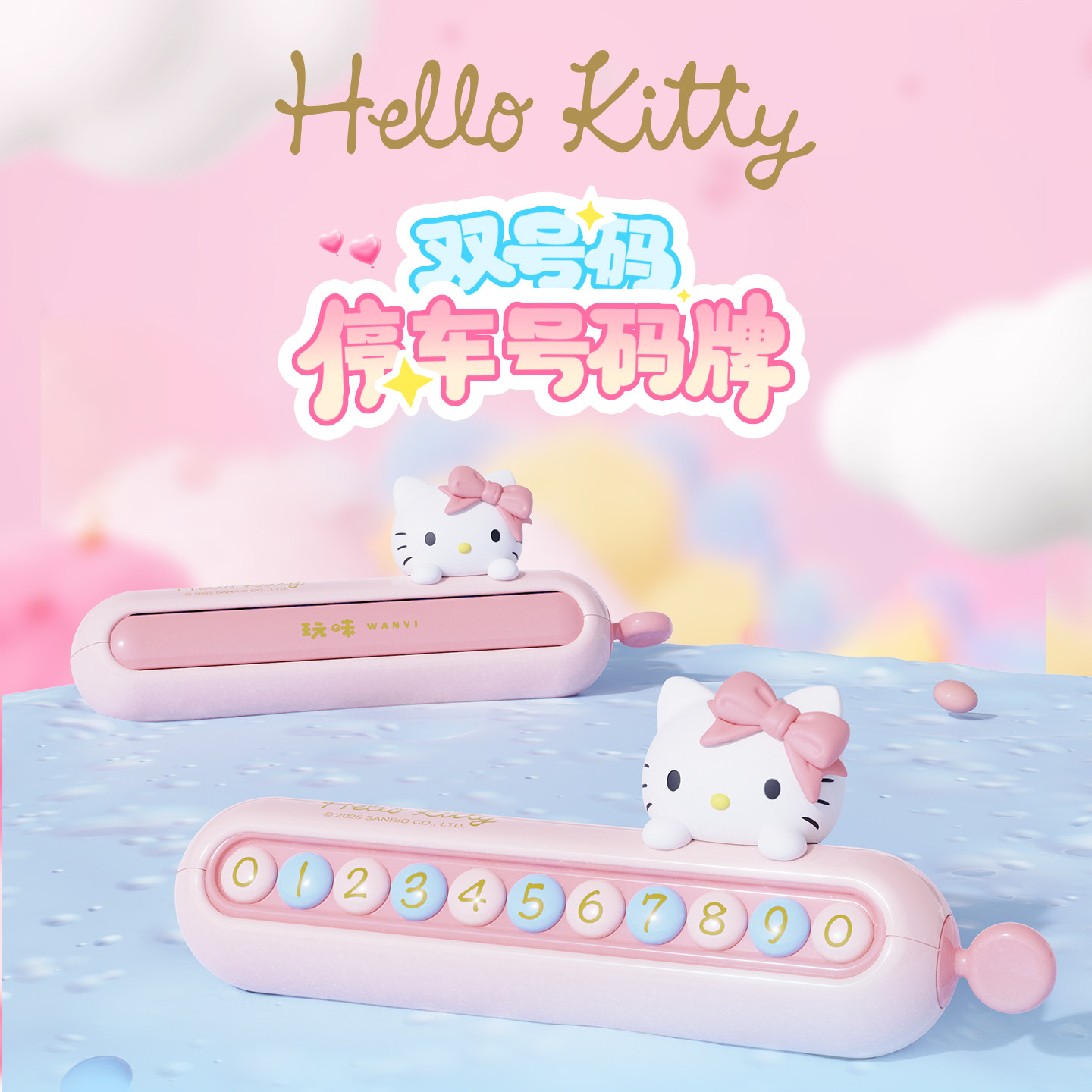 📚 玩味kitty停车号码牌双号码临时挪车电话牌中控台车载摆件新款