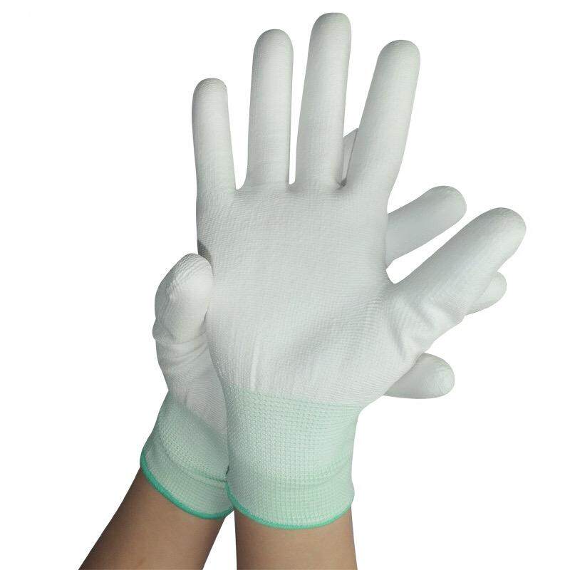 📚 1200双薄款白尼龙PU涂指手套涂胶浸胶涂掌电子无尘防静电手套劳保