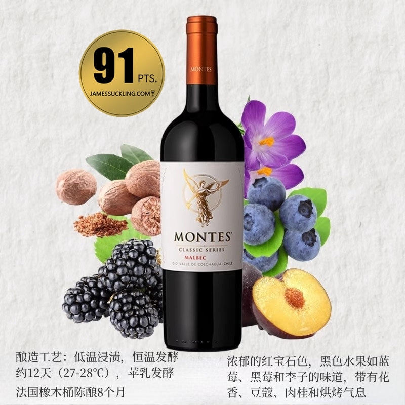 📚 montes蒙特斯天使马尔贝克赤霞珠红酒葡萄酒智利原瓶进口干红正品