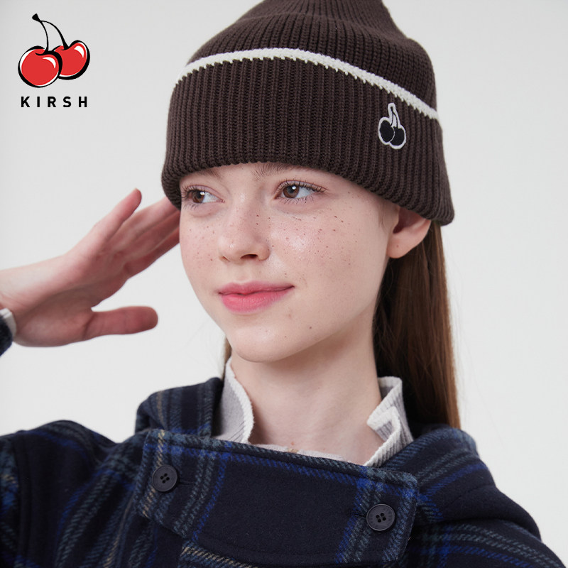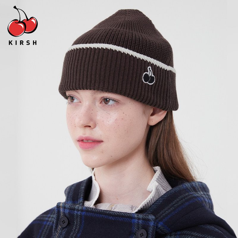 📚 樱桃KIRSH 刺绣针织冷帽女秋冬情侣韩系百搭保暖毛线帽子针织帽