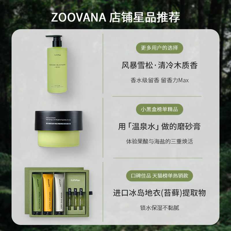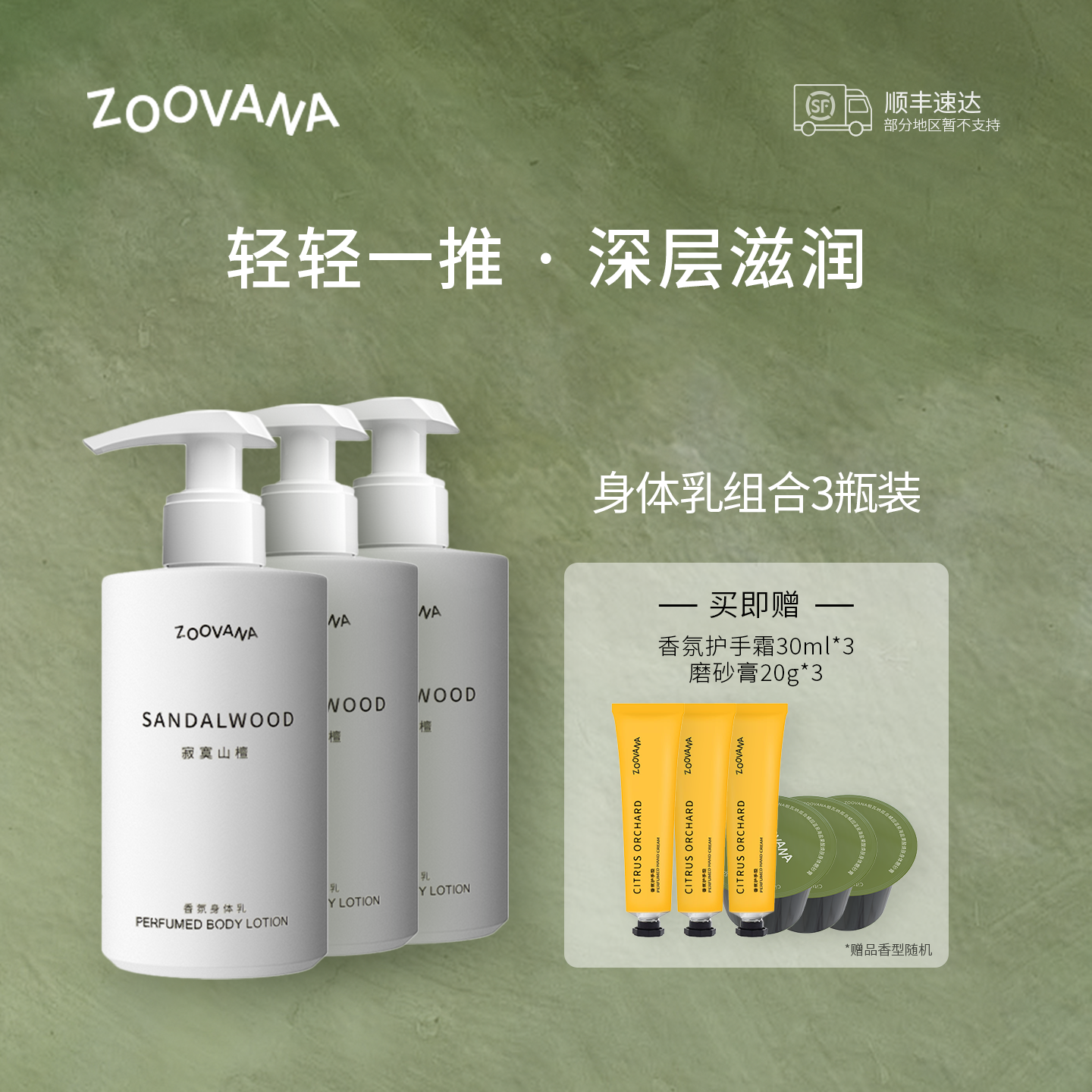 📚 ZOOVANA祖瓦纳香氛身体乳木果木质檀香持久留香补水保湿男女3瓶装