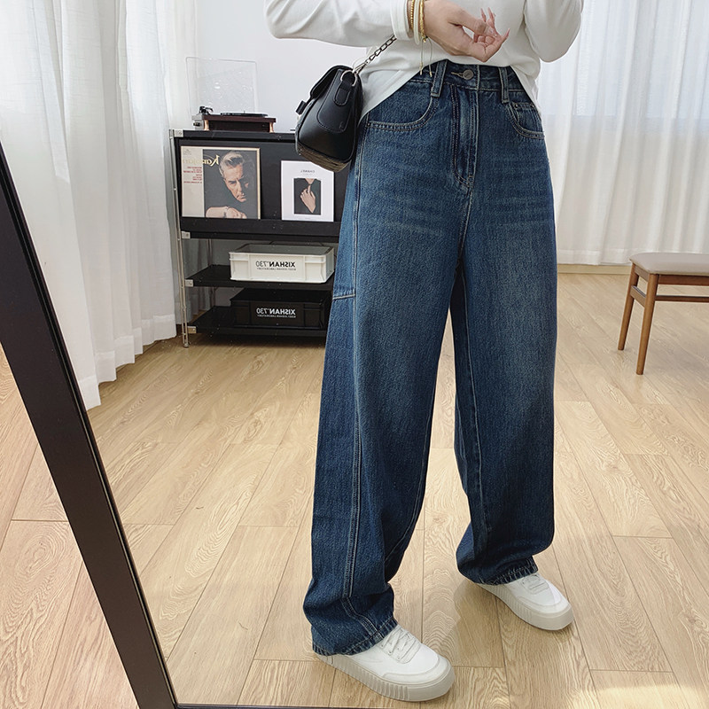 📚 防褪色高腰显瘦茧型镰刀裤女秋季宽松直筒弯刀牛仔阔腿裤春秋长裤