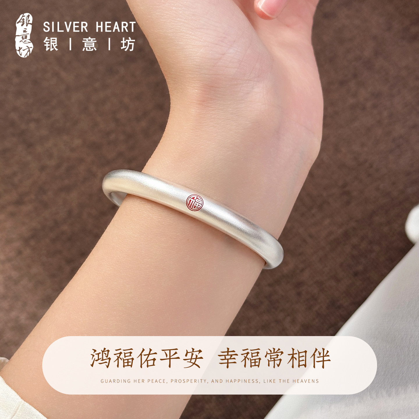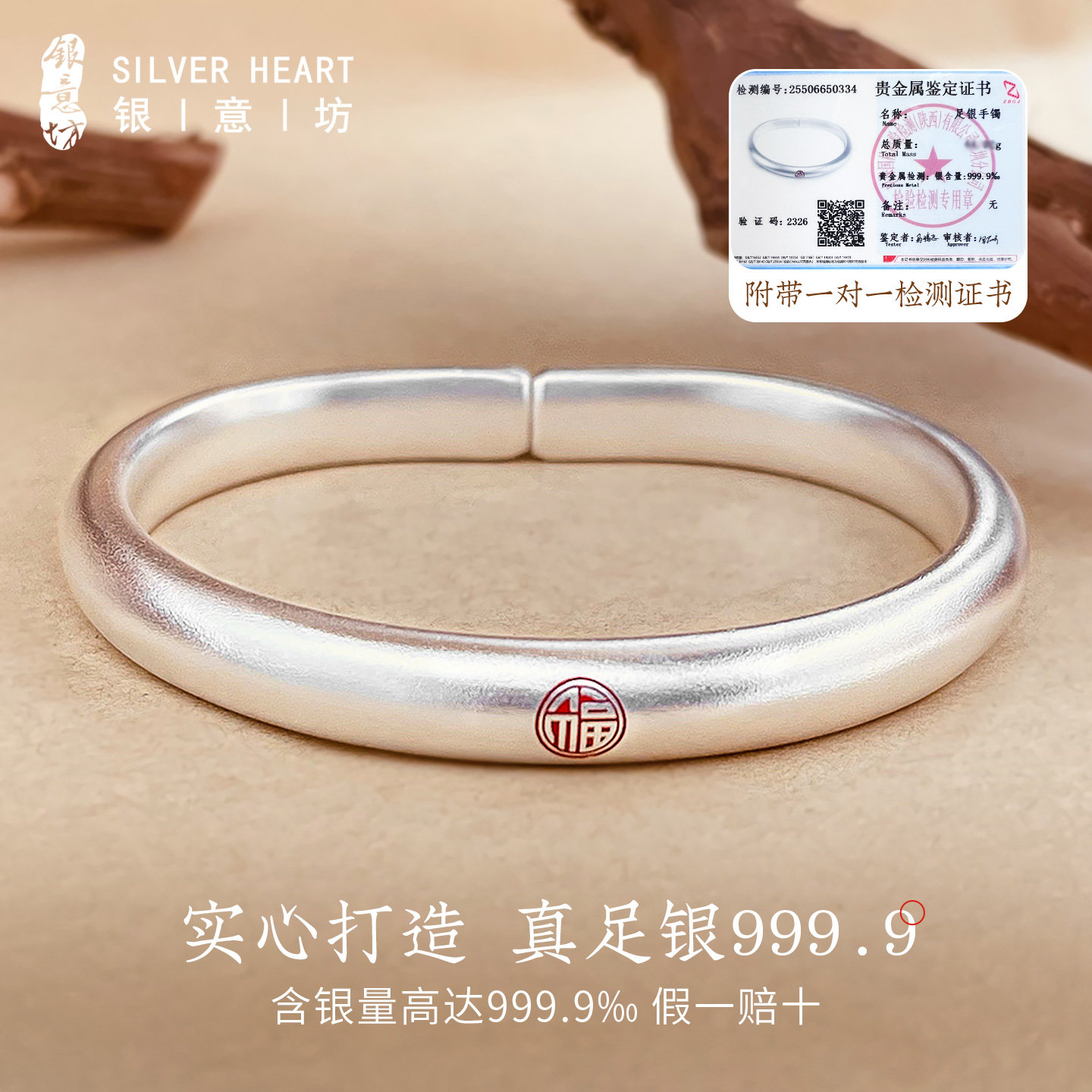 📚 古法银手镯女款2025新款9999纯银马蹄镯银手链妈妈生日本命年礼物