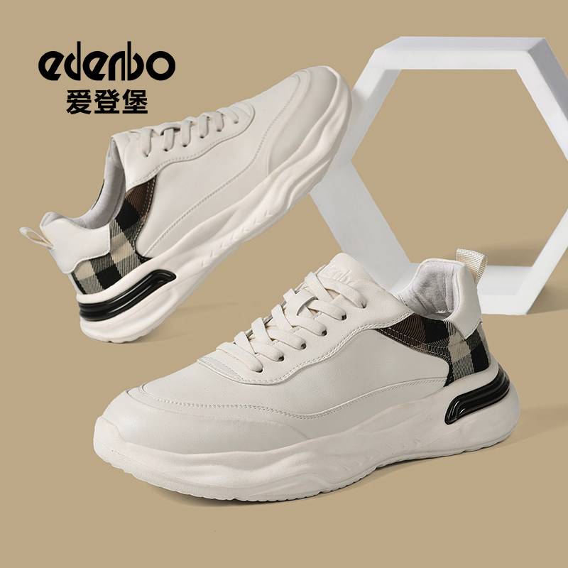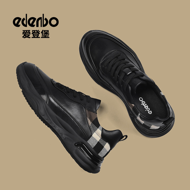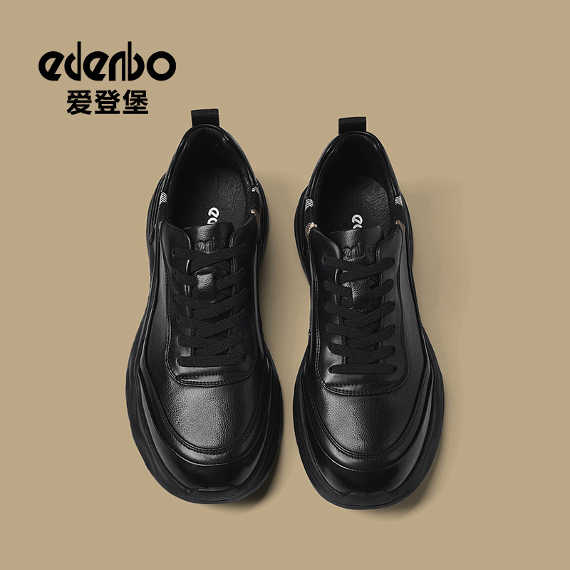 📚 爱登堡休闲鞋男士2025新款秋季头层牛皮黑色潮流百搭运动皮鞋男